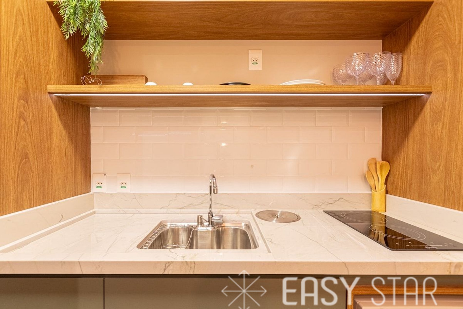 Desfrute da TV inteligente, conexão Wi-Fi, ar-condicionado e de uma cozinha totalmente equipada, incluindo a conveniência de uma máquina Nespresso.