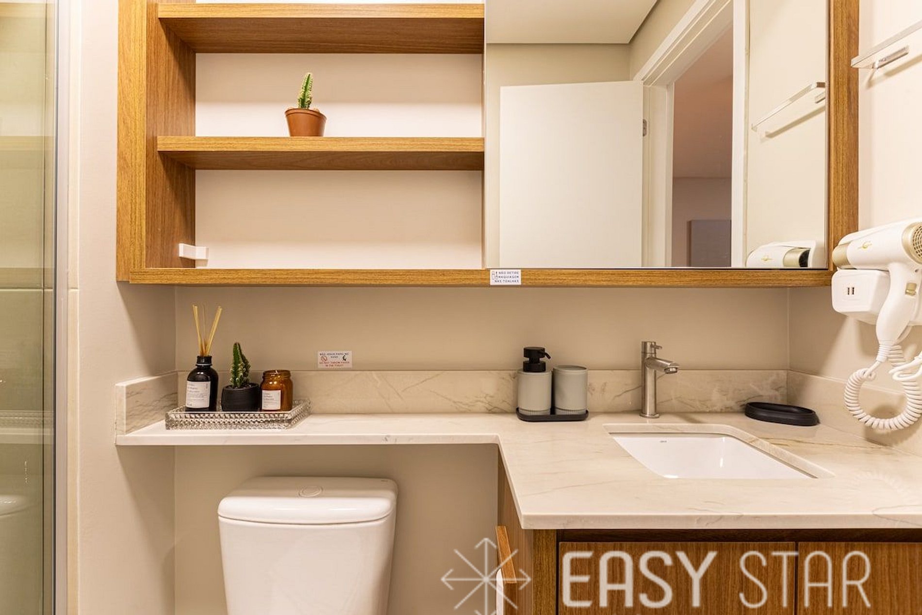 Para garantir que sua estadia seja perfeita, disponibilizamos um secador de cabelo e um ferro de passar. É importante observar que a voltagem da unidade é de 110W, pensando na sua comodidade.
