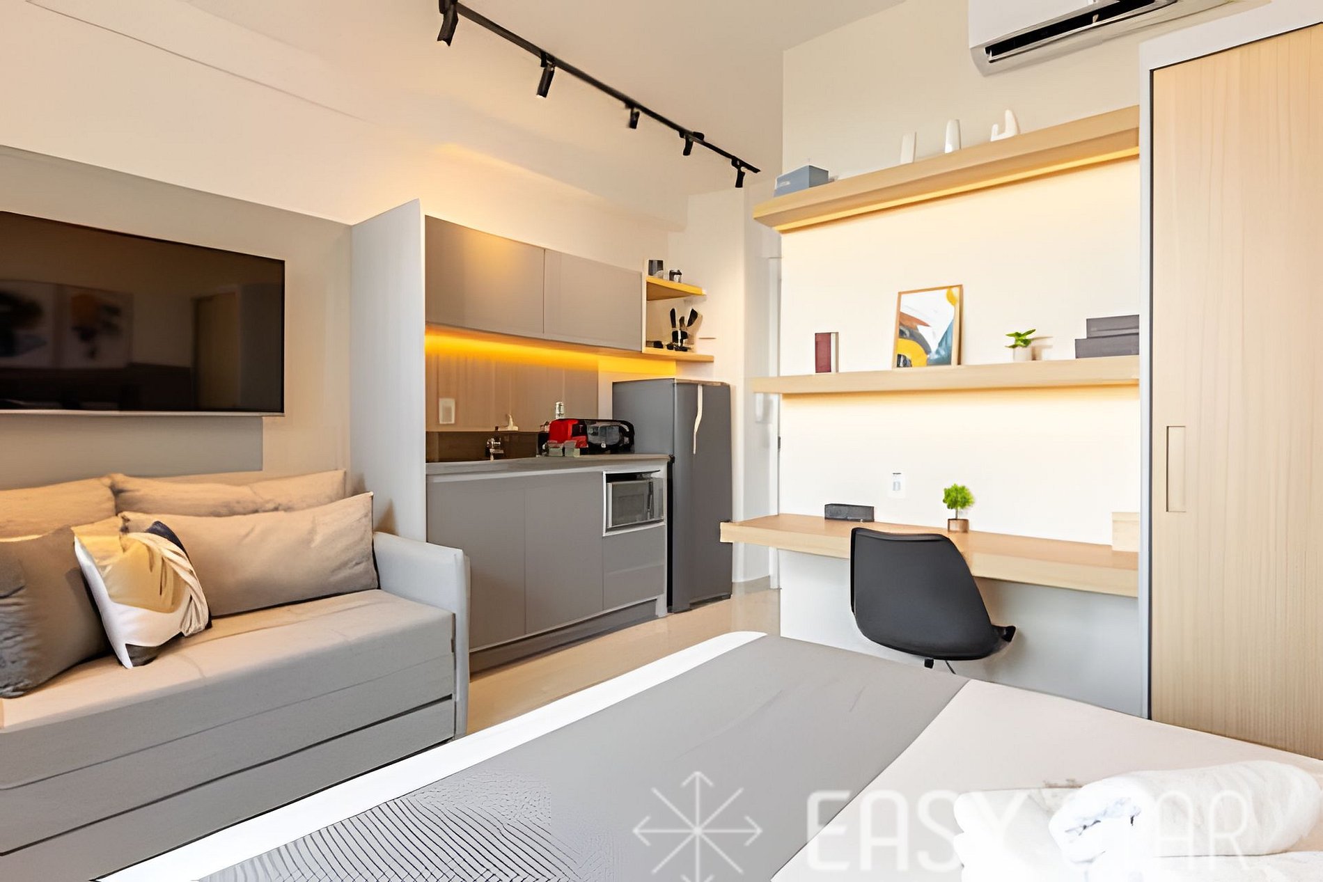 Seja bem-vindo ao nosso encantador estúdio, projetado para proporcionar uma estadia memorável para até 4 pessoas! Nosso espaço acolhedor oferece o equilíbrio perfeito entre conforto e praticidade, tornando sua experiência única e inesquecível. No estúdio você encontrará uma cama de casal padrão e um sofá-cama de casal para acomodar confortavelmente grupos de até 4 pessoas. O ambiente é climatizado com um eficiente ar-condicionado split, garantindo uma temperatura agradável em qualquer época do ano. Para entretenimento, a TV equipada com Chrome Cast proporciona a oportunidade de assistir aos seus programas favoritos ou compartilhar momentos especiais com amigos e familiares. Além disso, oferecemos uma conexão Wi-Fi rápida e confiável para manter você conectado durante toda a estadia. Nossa cozinha totalmente equipada é um convite à culinária, com um moderno cooktop de indução, forno, máquina Nespresso para aquele café perfeito pela manhã, micro-ondas, geladeira e todos os utensílios necessários para preparar suas refeições. Desde liquidificador até pratos, copos e talheres, fornecemos tudo o que você precisa para desfrutar de deliciosas refeições no conforto do seu próprio espaço. Entendemos que os detalhes fazem a diferença, por isso fornecemos um secador de cabelo e um ferro de passar, garantindo que sua estadia seja completa e livre de preocupações. A voltagem da unidade é de 110W para sua conveniência. No que diz respeito ao conforto do sono e banho, oferecemos um enxoval completo de cama e banho. Disponibilizamos enxoval completo de cama e banho (troca do enxoval com custo extra) 1 kit banho por hóspede com 1 toalha de corpo, 1 uma de rosto Roupa de cama com lençol de elástico, lençol sem elástico 1 travesseiro com fronha por hóspede. Além de todas essas comodidades, nosso estúdio possui uma adorável varanda que proporciona uma linda iluminação natural, tornando o espaço ainda mais acolhedor. Seja para uma escapada romântica a dois ou uma viagem em família, nosso estúdio é o refúgio ideal. Esperamos recebê-lo em breve para uma experiência única, repleta de conforto e comodidades que farão da sua estadia uma lembrança inesquecível. Reserve agora e descubra o charme e a praticidade que temos a oferecer!