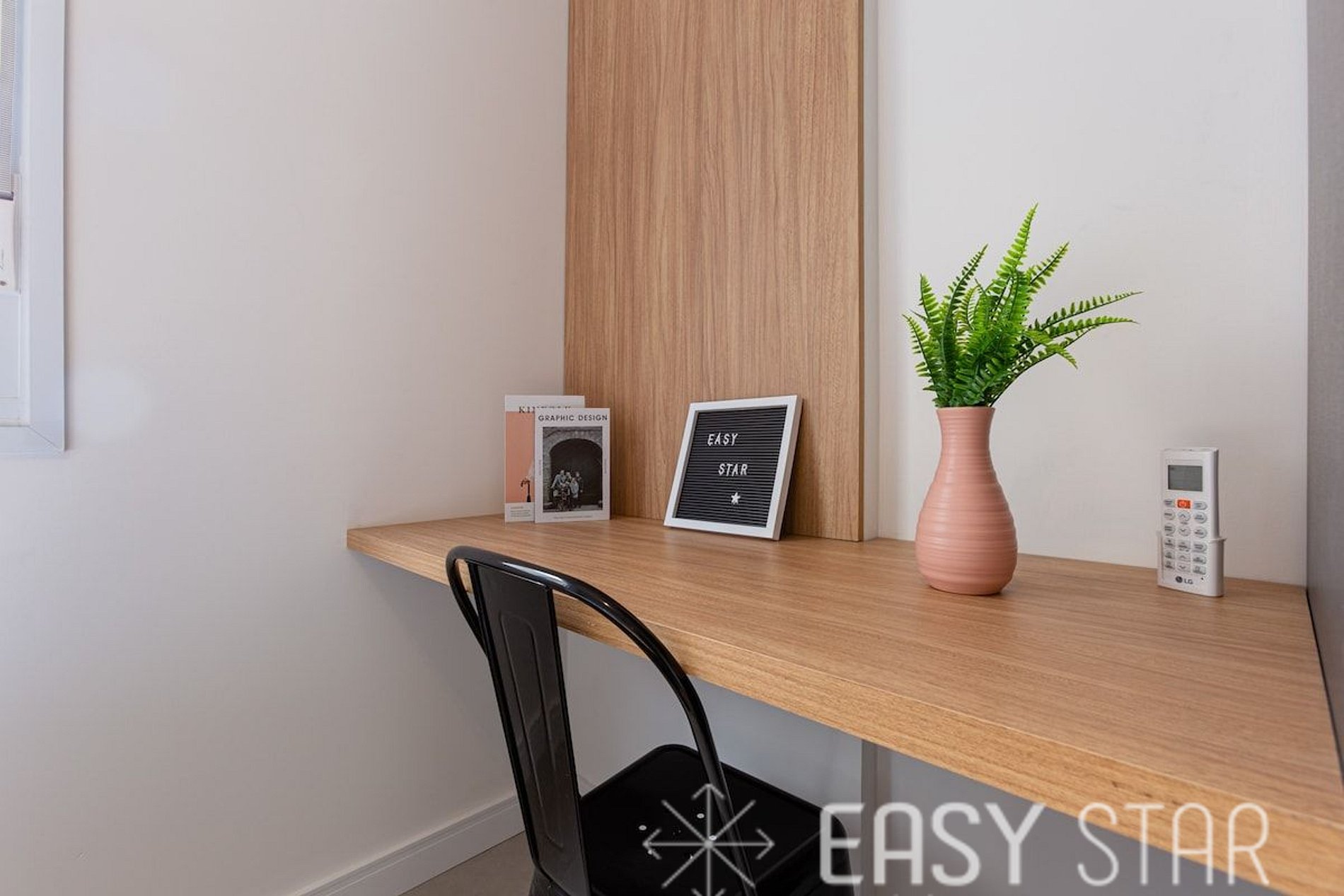 Além disso, o apartamento oferece um espaço para home office, equipado para acomodar uma pessoa, proporcionando um ambiente tranquilo para o trabalho ou estudo.