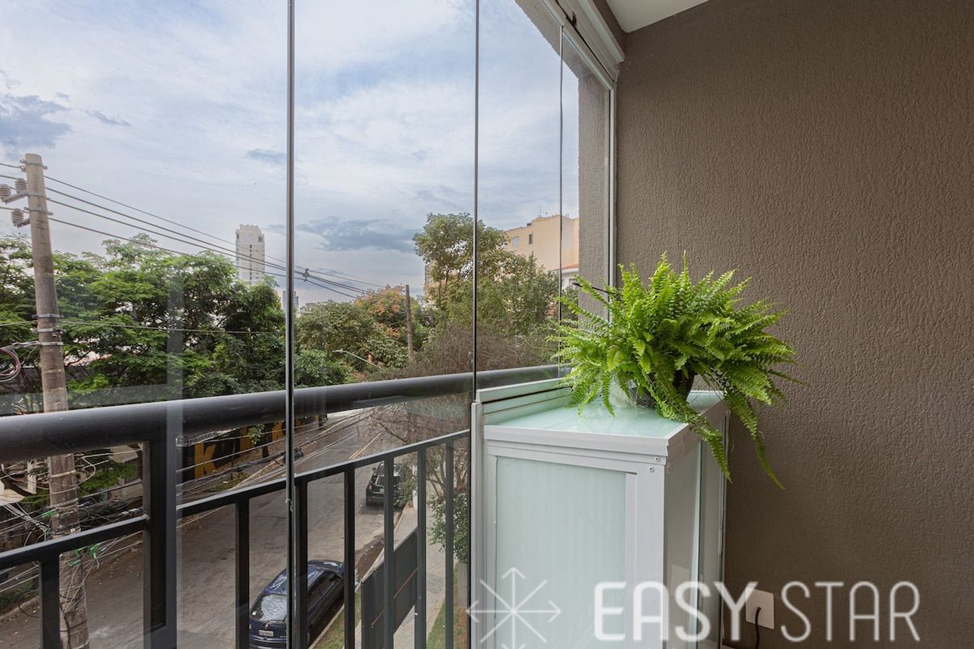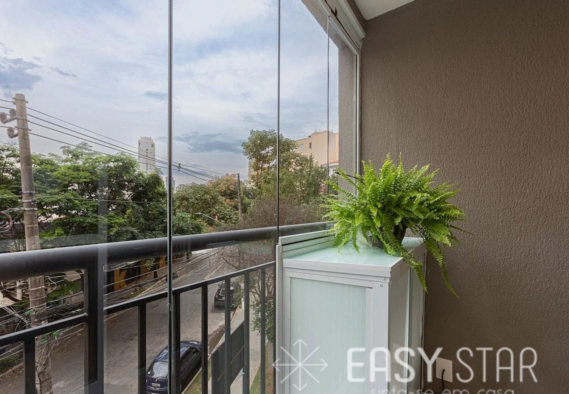 Para os amantes de luz natural, nosso estúdio possui uma charmosa varanda que oferece uma bela iluminação natural ao espaço. É o lugar perfeito para relaxar e desfrutar da vista.