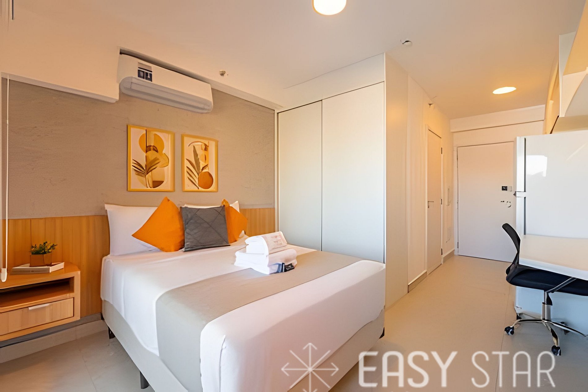 This compact and modern studio comfortably accommodates up to two people, making it an ideal choice for those seeking practicality and functionality. Located just 100 meters from Borba Gato Station, it offers quick and easy access to the entire city. The space is equipped with air conditioning, a fully equipped kitchen with utensils, and all the amenities to make your stay peaceful and comfortable. Bed and bath linens are included, allowing you to travel light and worry-free.
