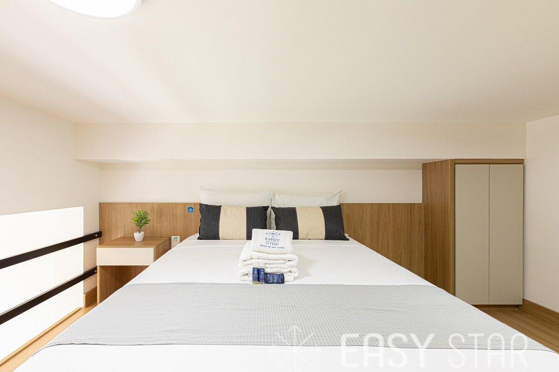 • Ropa de cama: 2 sábanas planas por cama, 1 almohada con funda por huésped.