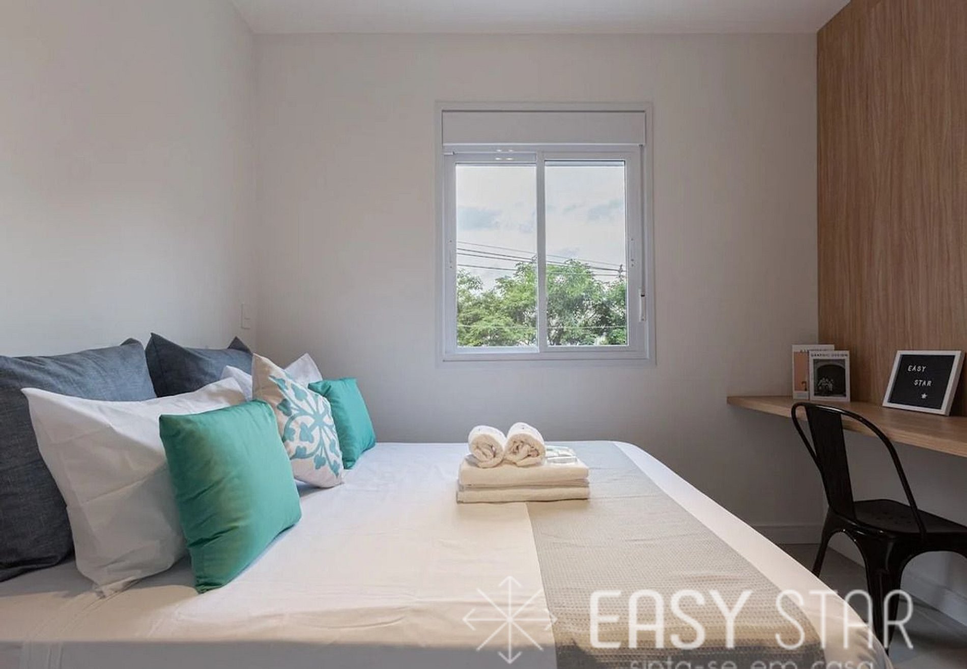 Além disso, o apartamento oferece um espaço para home office, equipado para acomodar uma pessoa, proporcionando um ambiente tranquilo para o trabalho ou estudo.