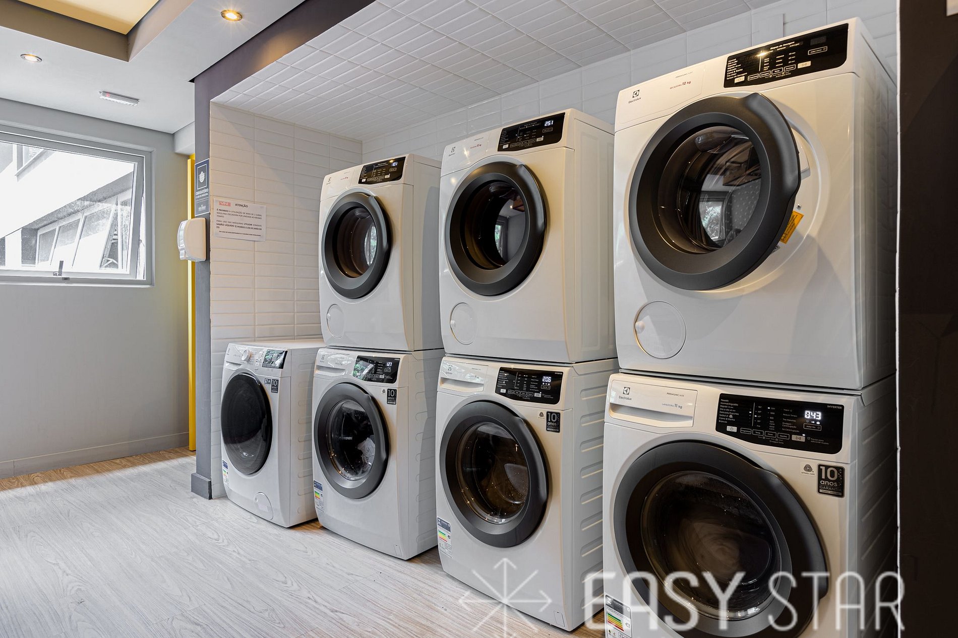 Predio dispõe de uma self laundry (lavanderia), paga a parte no proprio local.