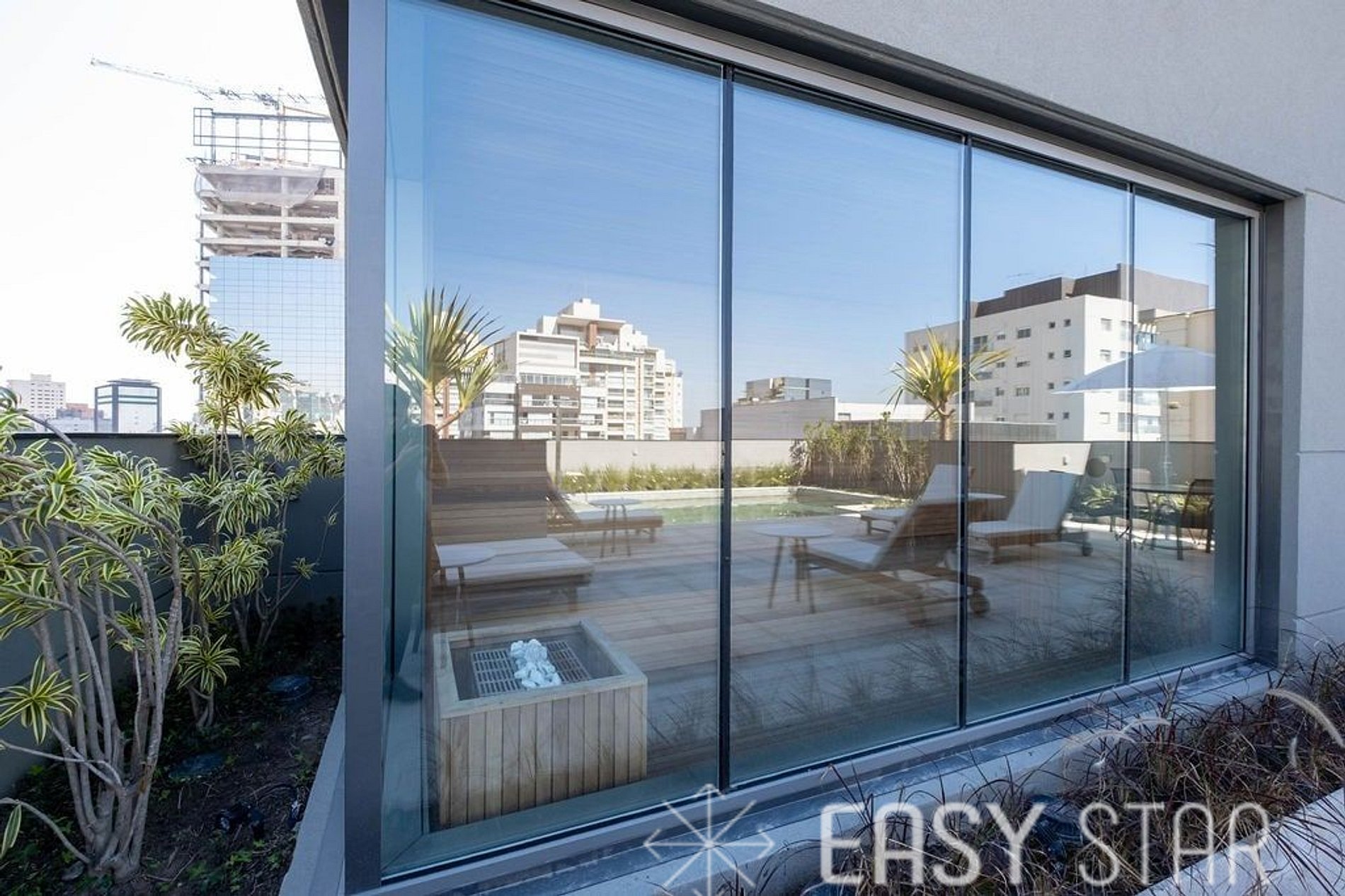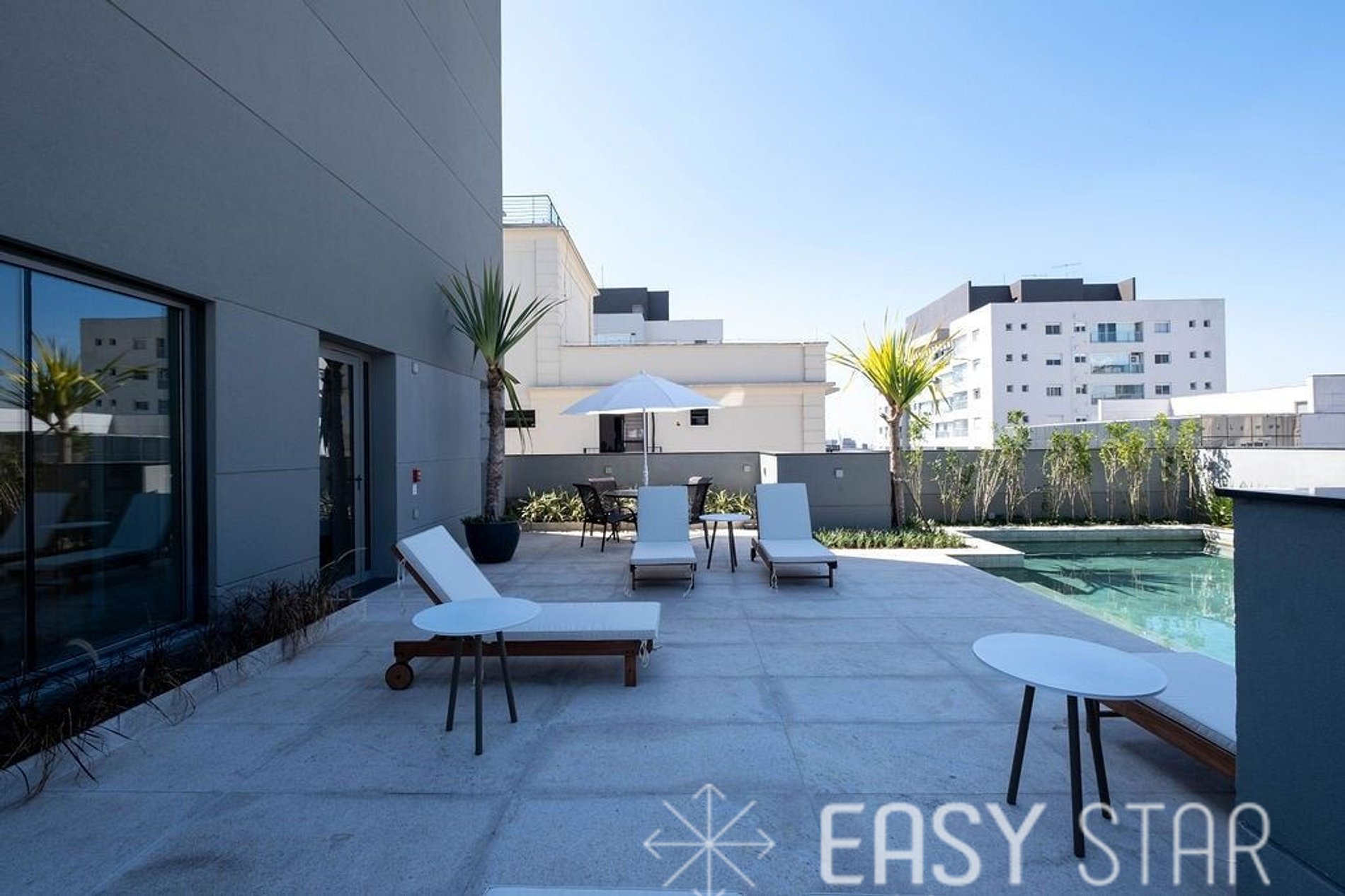 E o melhor está reservado para o nosso Rooftop. Lá, você encontrará um moderno centro de fitness, perfeito para manter sua rotina de exercícios. Após o treino, você pode relaxar na sauna e desfrutar de um solário para recarregar as energias. Para os amantes da água, nossa piscina é o lugar ideal para um mergulho refrescante e um momento de lazer.