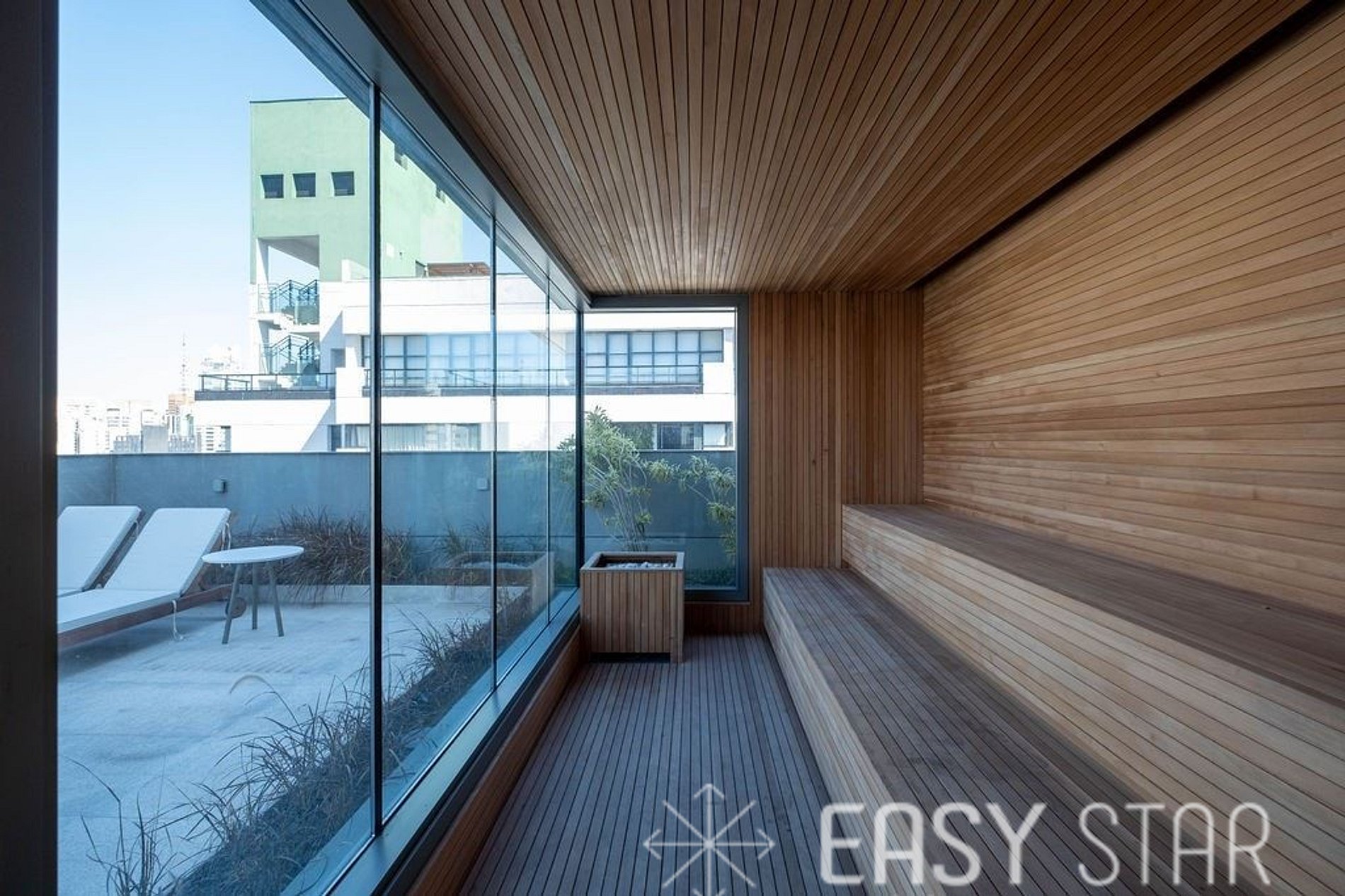 E o melhor está reservado para o nosso Rooftop. Lá, você encontrará um moderno centro de fitness, perfeito para manter sua rotina de exercícios. Após o treino, você pode relaxar na sauna e desfrutar de um solário para recarregar as energias. Para os amantes da água, nossa piscina é o lugar ideal para um mergulho refrescante e um momento de lazer.