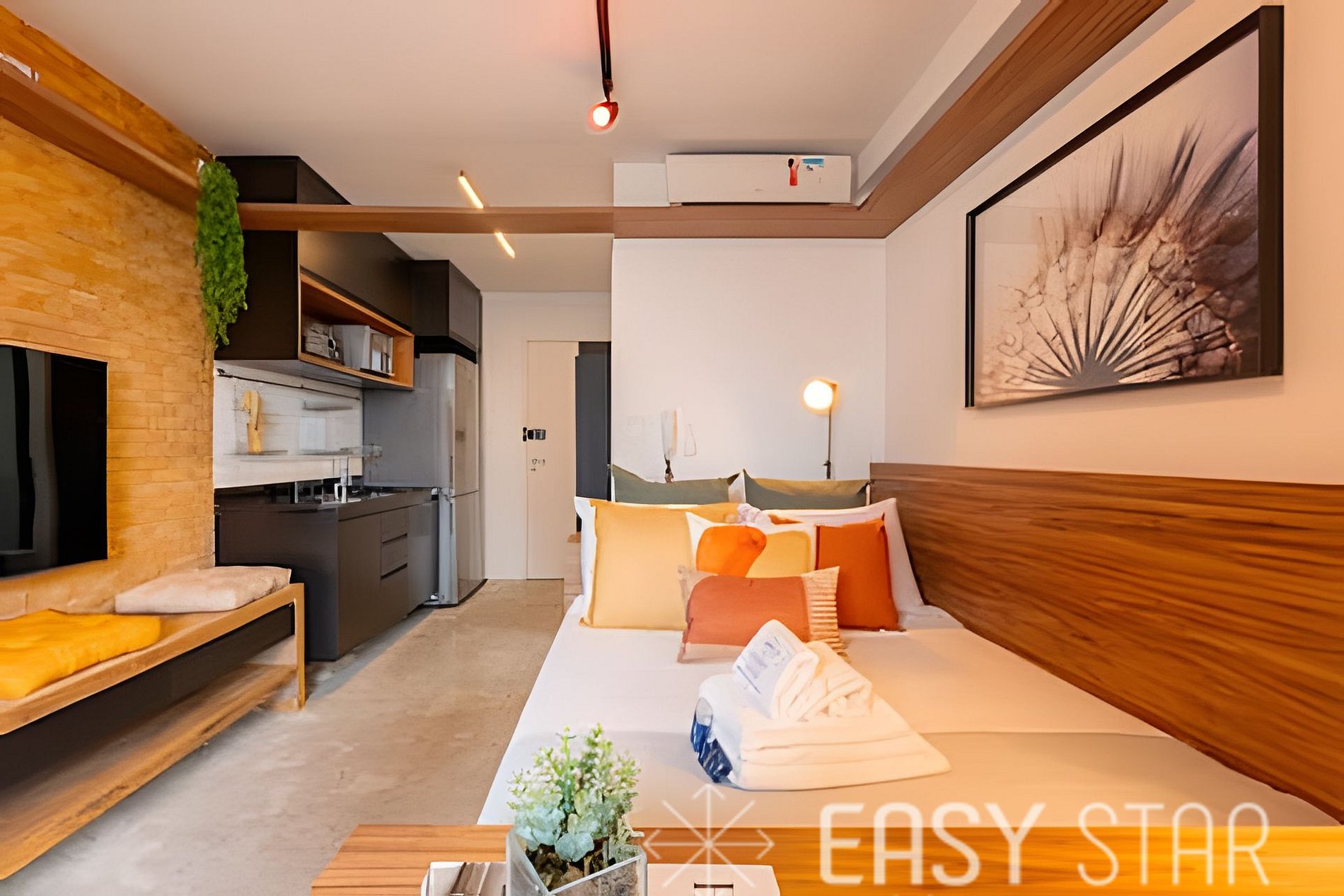 Seja bem-vindo ao nosso encantador studio, perfeito para acomodar até 2 pessoas. Com uma atmosfera acolhedora e espaçosa, este espaço foi cuidadosamente montado para recebê-lo com carinho. O apartamento dispõe de uma confortável cama casal, Smart TV para seu entretenimento, Wi-Fi de ótima qualidade para mantê-lo conectado, além de uma cortina blackout para garantir boas noites de sono. A cozinha completa está equipada com um cooktop de indução de duas bocas, micro-ondas, forno elétrico e geladeira, proporcionando tudo o que você precisa para preparar suas refeições. Pensamos em cada detalhe para tornar sua estadia o mais confortável possível, e é por isso que fornecemos um secador de cabelo e um ferro de passar. Queremos que você se sinta em casa! (a voltagem da unidade é de 110W) Para os amantes de luz natural, nosso estúdio possui uma charmosa varanda que oferece uma bela iluminação natural ao espaço. É o lugar perfeito para relaxar e desfrutar da vista. Disponibilizamos enxoval completo de cama e banho (troca do enxoval com custo extra) 1 kit banho por hóspede com 1 toalha de corpo, 1 uma de rosto Roupa de cama com lençol de elástico, lençol sem elástico 1 travesseiro com fronha por hóspede. 1 manta microfibra por cama. O banheiro possui um chuveiro a gás e secador de cabelo de parede para seu conforto Venha desfrutar deste espaço charmoso e aconchegante durante sua estadia. Estamos ansiosos para recebê-lo e tornar sua experiência memorável!