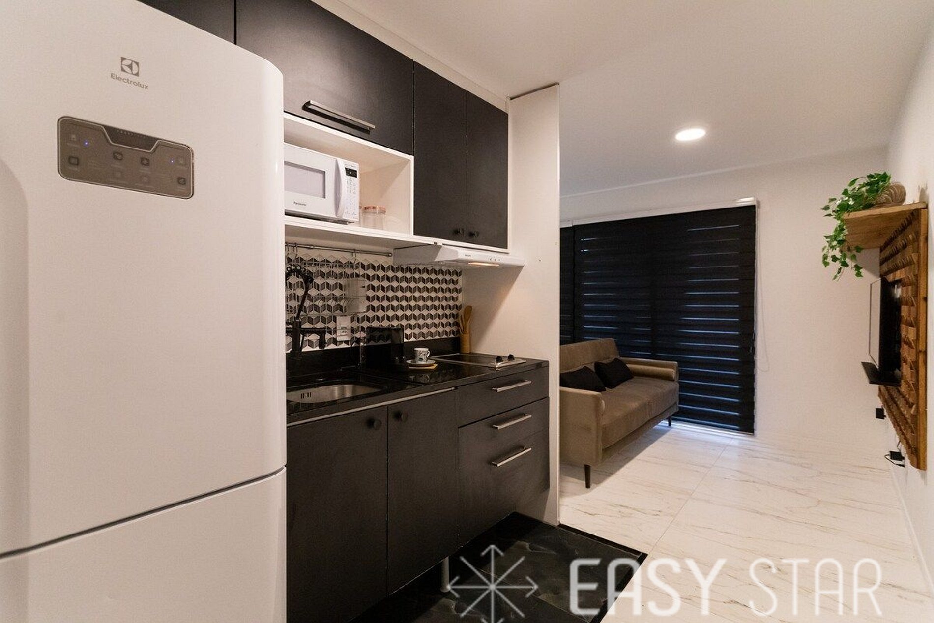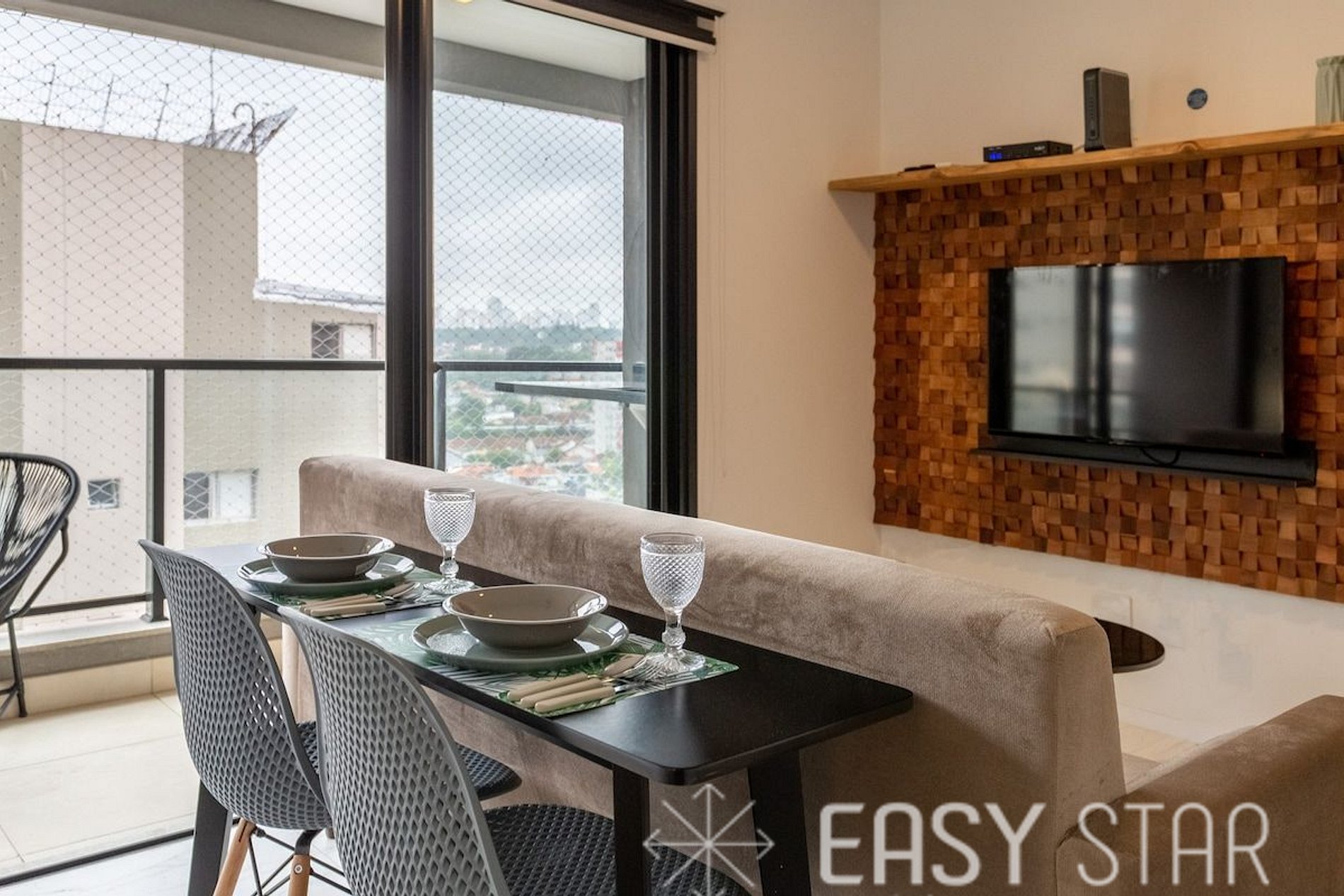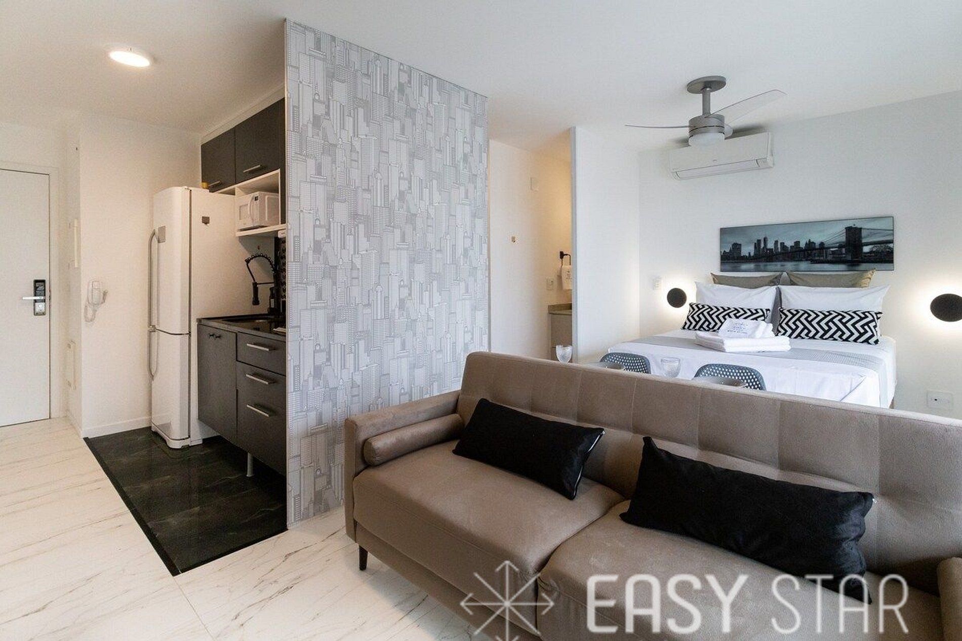 Além disso, o studio possui uma encantadora varanda com vista para o bairro, que oferece uma abundância de luz natural, criando um ambiente alegre e acolhedor.