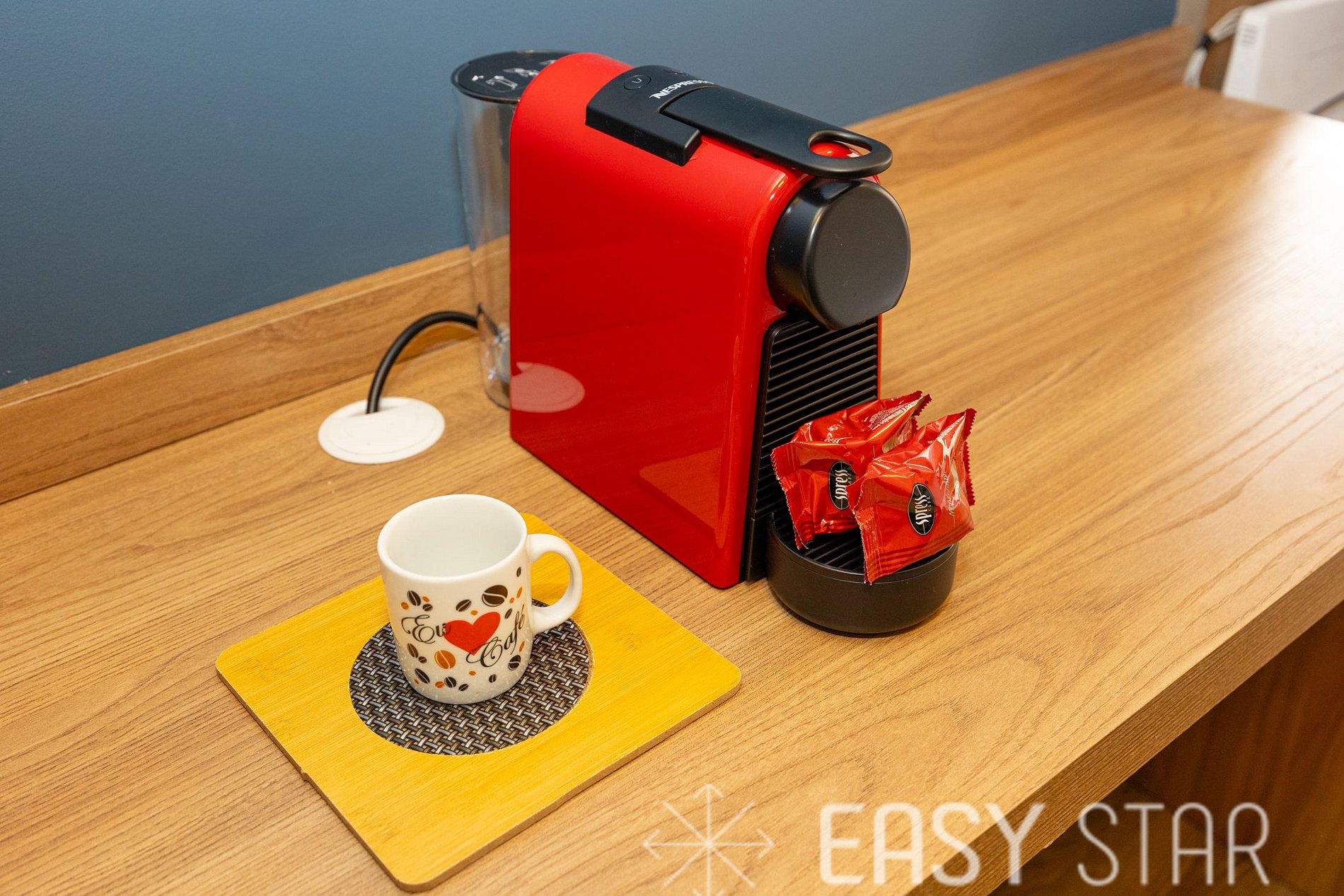 Para os amantes de café, oferecemos uma máquina Nespresso para que você possa desfrutar de suas bebidas favoritas a qualquer momento. Além disso, você encontrará uma geladeira e um forninho para suas necessidades culinárias.