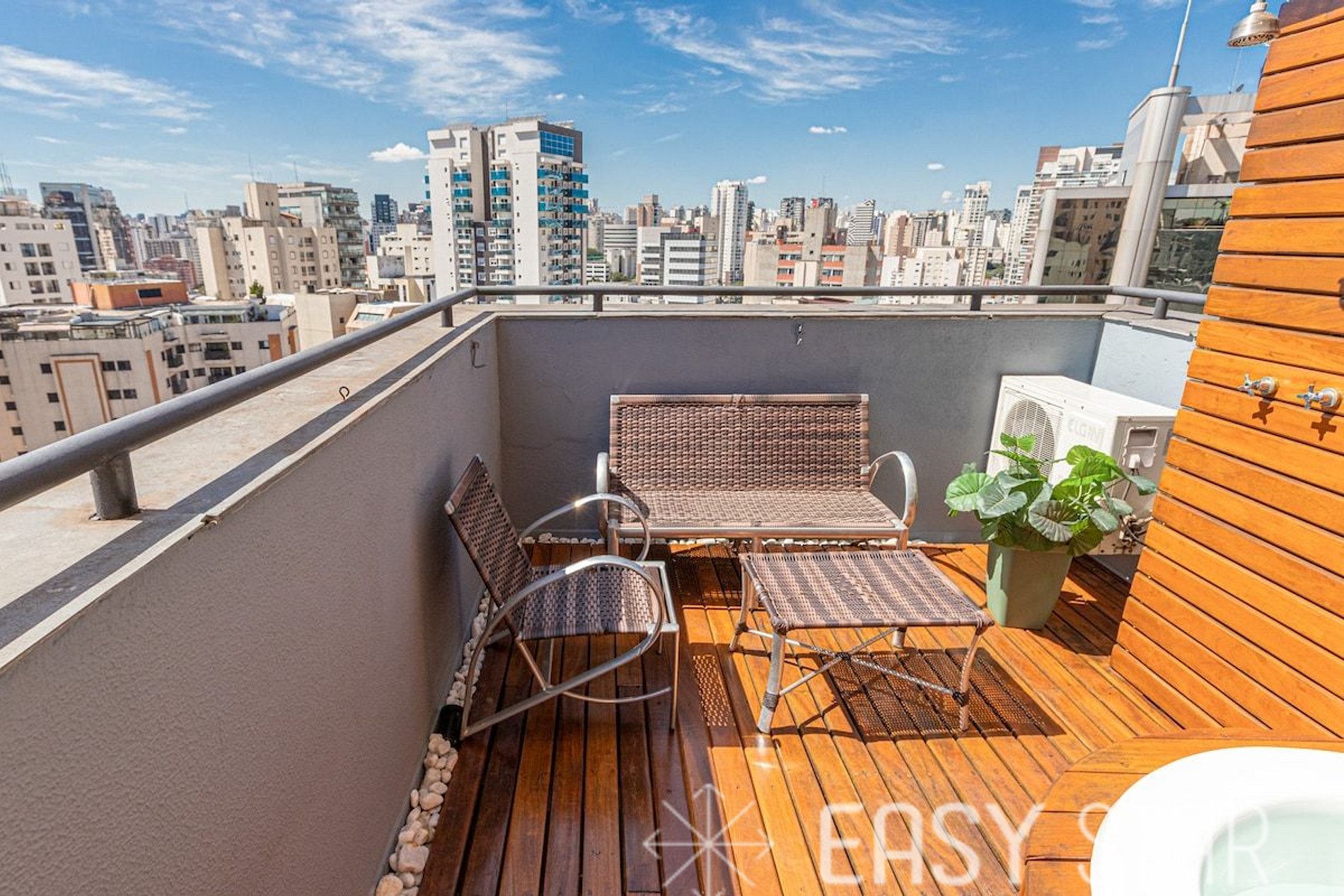 O charmoso apartamento de um quarto é perfeito para quem precisa aliar conforto e momentos de tranquilidade aproveitando a área externa. Com localização pra lá de privilegiada, o apartamento encontra-se no coração da Vila Olímpia. Seu ponto alto com certeza é a ampla varanda com o ofurô e churrasqueira e com uma vista incrível da cidade. Conta com cozinha equipada com geladeira, micro-ondas, forno elétrico, cafeteira Nespresso, Smart-Tv 50", máquina de lavar e banheiro com ducha potente.