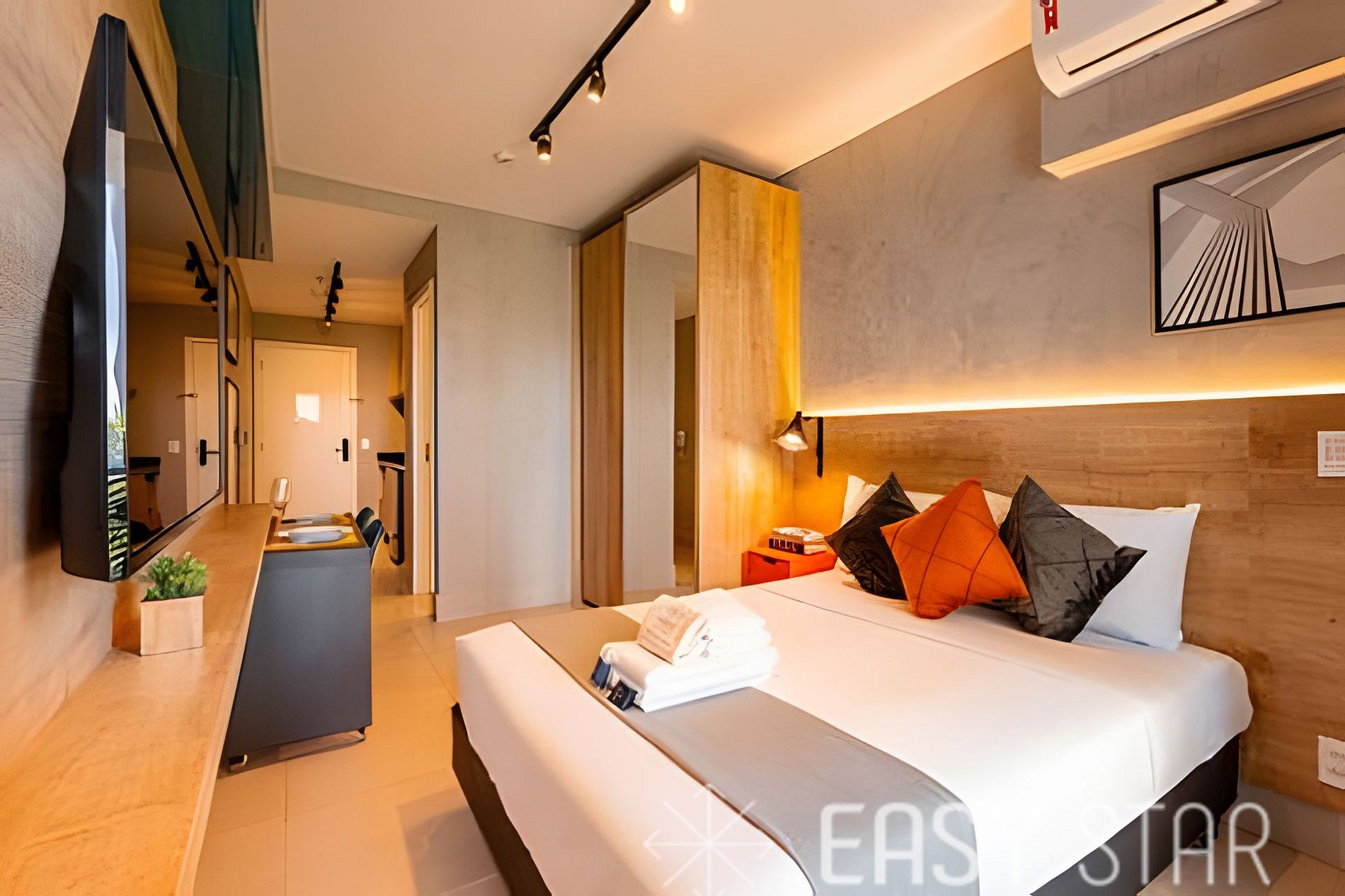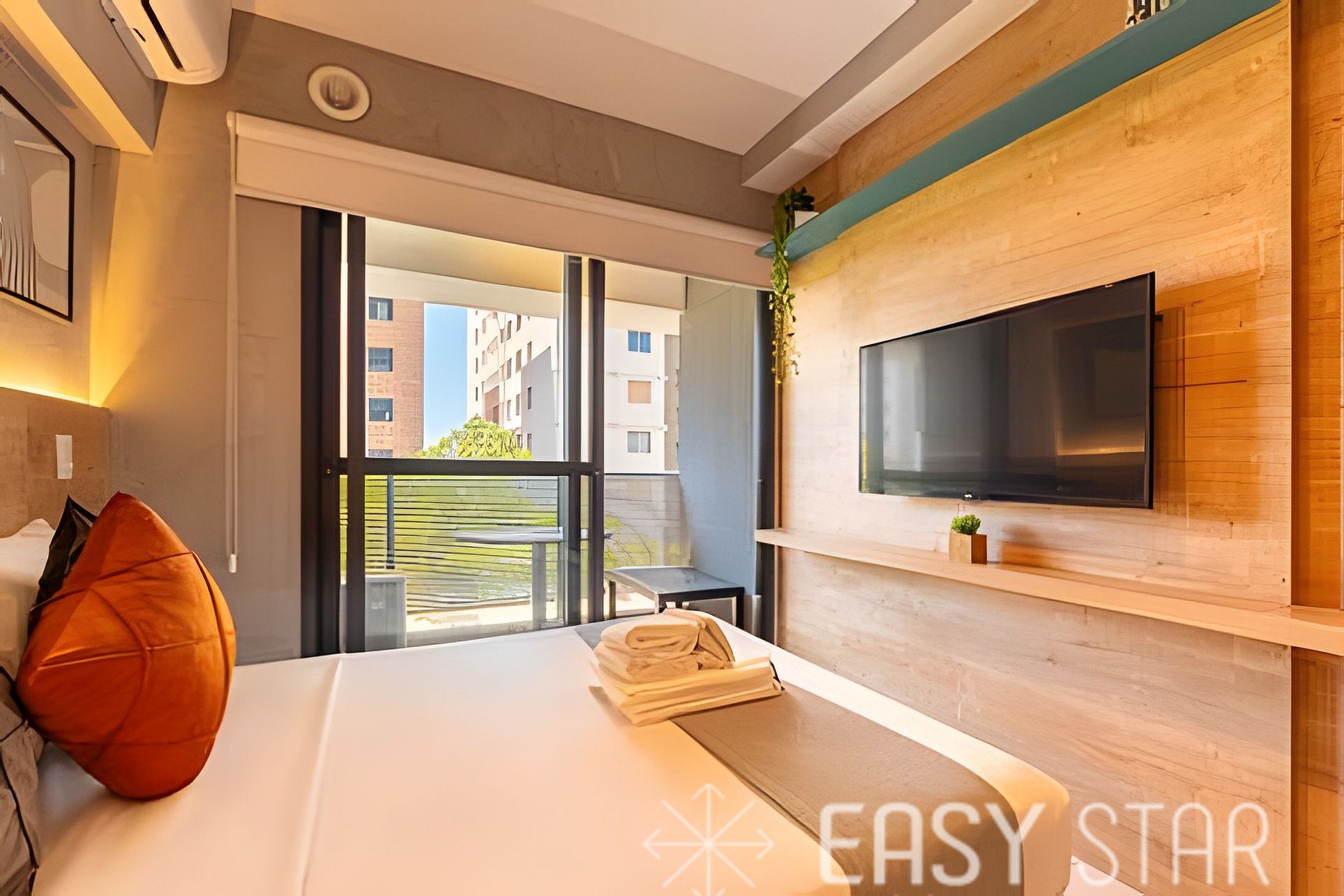 Localizado no coração da vibrante cidade de São Paulo, nossa charmosa acomodação oferece o equilíbrio perfeito entre conforto e praticidade. Acomodamos até dois hóspedes em uma cama de tamanho casal padrão e para garantir seu conforto térmico, disponibilizamos ar condicionado, proporcionando um ambiente agradável a qualquer hora do dia. Para os momentos de lazer, relaxe diante da SMART TV, conecte-se ao mundo com nossa conexão WI-FI de alta velocidade ou explore as opções de entretenimento disponíveis na cidade. A praticidade da nossa cozinha totalmente equipada eleva a experiência de hospedagem. Delicie-se preparando suas refeições favoritas na moderna cooktop de indução de 2 bocas, utilizando utensílios de alta qualidade da Tramontina. O forno elétrico, frigobar e micro-ondas complementam a experiência culinária, proporcionando conveniência e flexibilidade durante sua estadia na agitada São Paulo. Para sua conveniência, disponibilizamos um secador de cabelo e um ferro de passar, garantindo que você esteja sempre impecável durante sua estadia. Por favor, note que a voltagem da unidade é de 110W, então você não precisa se preocupar com adaptadores. Disponibilizamos enxoval completo de cama e banho (troca do enxoval com custo extra) 1 kit banho por hóspede com 1 toalha de corpo, 1 uma de rosto Roupa de cama com lençol de elástico, lençol sem elástico 1 travesseiro com fronha por hóspede. 1 manta microfibra por cama. Além disso, o nosso estúdio possui uma adorável varanda que permite a entrada de uma linda iluminação natural, criando um ambiente acolhedor e aconchegante para sua estadia.