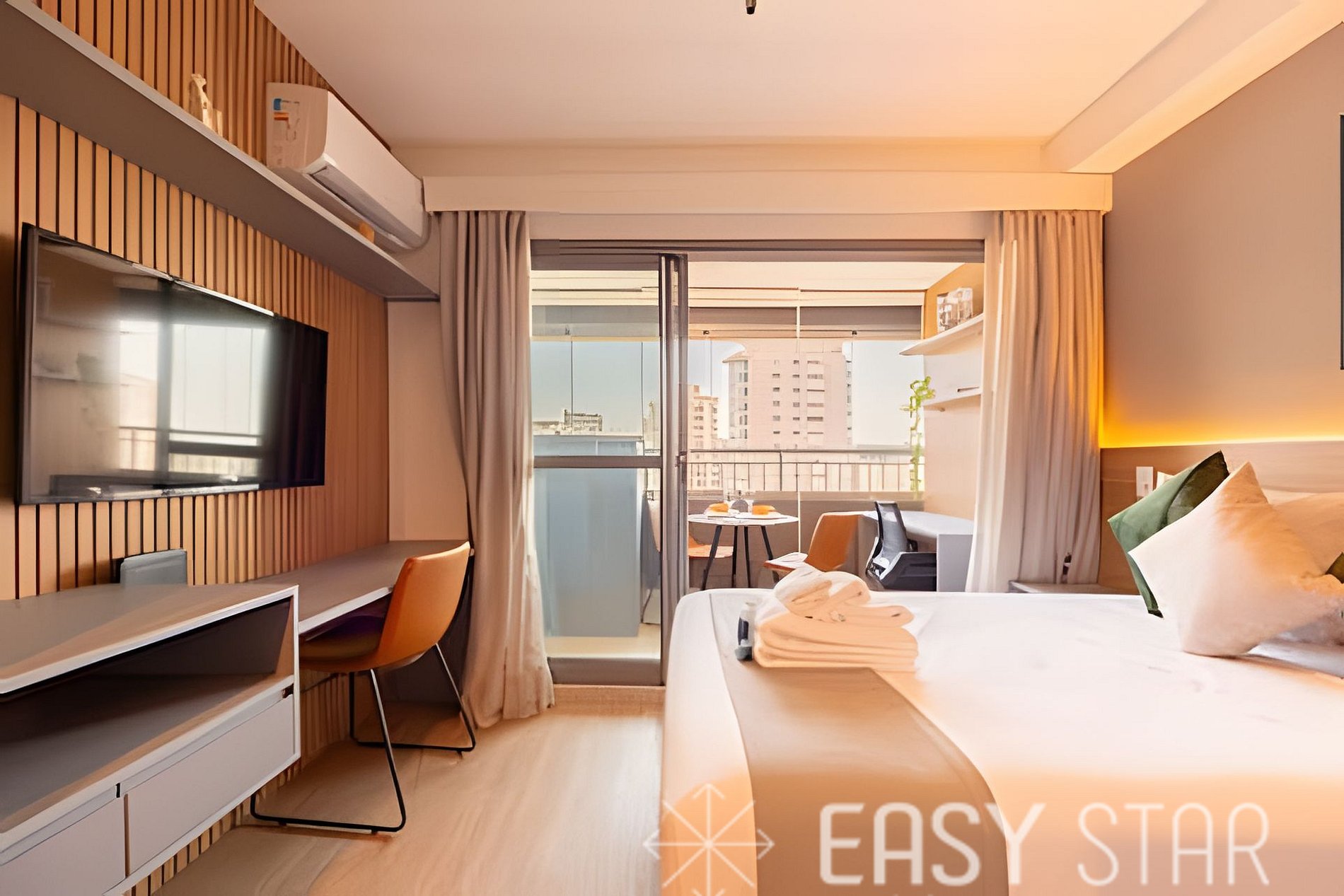 Este espaço é ideal para até 2 pessoas. Oferecemos uma cama casal de tamanho padrão. Além disso, o ar-condicionado split mantém a temperatura ideal, e a TV e o Wi-Fi estão disponíveis para o seu entretenimento e conveniência. Equipada com um cooktop de indução, forninho, máquina Nespresso, micro-ondas, geladeira. (sem alimentos para consumo ou compra) e todos os utensílios necessários, você terá a liberdade de preparar suas refeições favoritas ou experimentar novas receitas. Para sua conveniência, disponibilizamos um secador de cabelo e um ferro de passar, garantindo que você esteja sempre impecável durante sua estadia. Por favor, note que a voltagem da unidade é de 110W, então você não precisa se preocupar com adaptadores. Disponibilizamos enxoval completo de cama e banho (troca do enxoval com custo extra) 1 kit banho por hóspede com 1 toalha de corpo, 1 uma de rosto Roupa de cama com lençol de elástico, lençol sem elástico 1 travesseiro com fronha por hóspede. 1 manta microfibra por cama. Além disso, o nosso estúdio possui uma adorável varanda que permite a entrada de uma linda iluminação natural, criando um ambiente acolhedor e aconchegante para sua estadia. Desfrute de uma estadia única e confortável no nosso estúdio, onde o conforto e a conveniência se unem para tornar sua experiência memorável. Reserve agora e permita-nos ser o seu lar longe de casa!