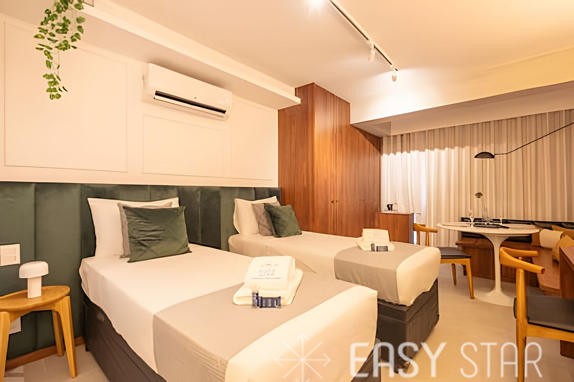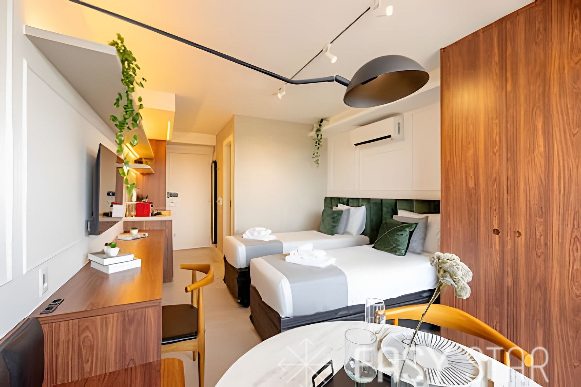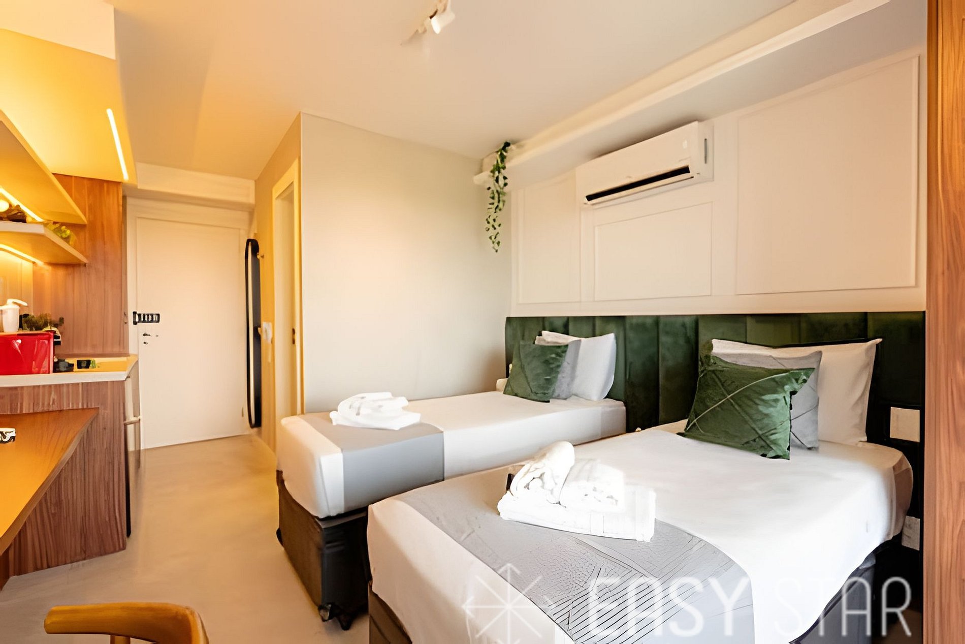 Compacto, funcional e sofisticado, este studio com duas camas de solteiro está á apenas 600mt metrô Alto da Boa Vista! Roupas de cama e banho também inclusas na hospedagem para você não se preocupar com nada! Perfeito para quem quer conhecer, estudar, fazer negócios, se divertir e viver em São Paulo. Não conta com vaga de garagem.