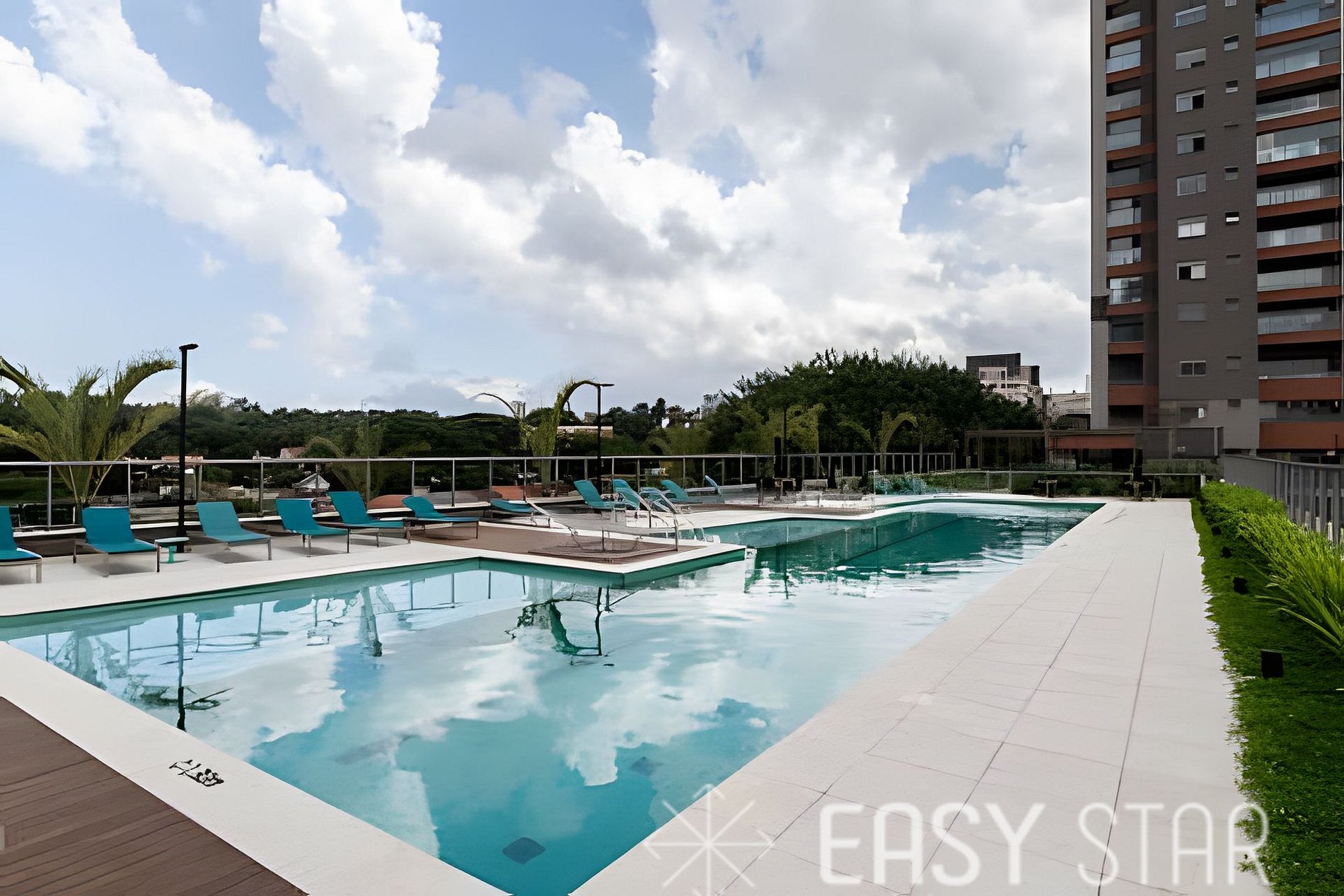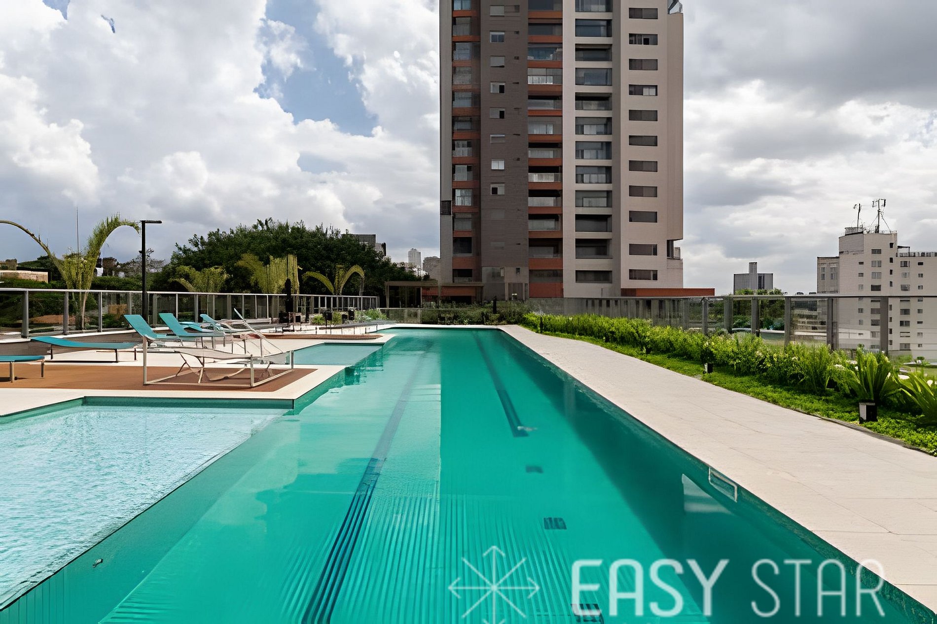 Dispõe de área de lazer com piscina, academia equipada, espaço compartilhado de trabalho ideal para home office ou reuniões rápidas e lavanderia compartilhada, proporcionando mais conveniência no dia a dia.