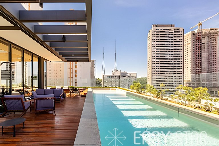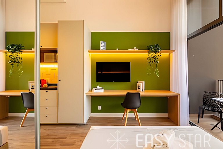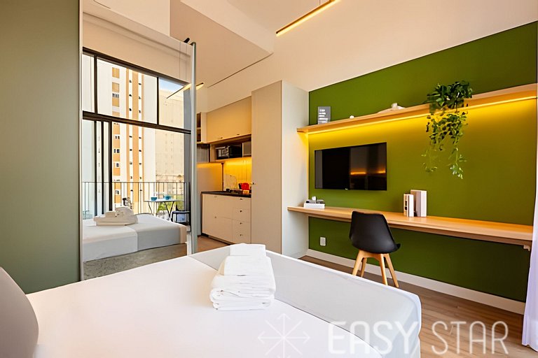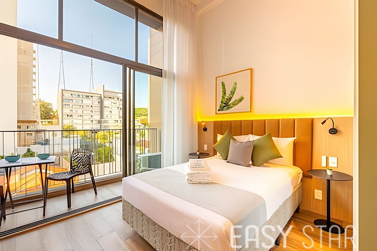 Seja bem-vindo ao nosso espaço estiloso e funcional, localizado a apenas 3 minutos da estação Sumaré! Ideal para até 2 pessoas, nosso studio combina estilo e praticidade para tornar sua estadia em São Paulo verdadeiramente memorável. Relaxe e desfrute do conforto de uma cama de casal padrão, acompanhada de ar condicionado para garantir noites tranquilas, e uma Smart TV com Wi-Fi de alta velocidade para entretenimento ilimitado. Nossa cozinha está totalmente equipada com tudo o que você precisa para preparar suas refeições favoritas durante sua estadia. Da cafeteira Nespresso ao cooktop de indução de 2 bocas, geladeira, micro-ondas e todos os utensílios necessários, garantimos que você terá tudo à sua disposição. Entendemos que os detalhes fazem a diferença, por isso fornecemos um secador de cabelo e um ferro de passar, garantindo que sua estadia seja completa e livre de preocupações. A voltagem da unidade é de 110W para sua conveniência. No que diz respeito ao conforto do sono e banho, oferecemos um enxoval completo de cama e banho. Disponibilizamos enxoval completo de cama e banho (troca do enxoval com custo extra) 1 kit banho por hóspede com 1 toalha de corpo, 1 uma de rosto Roupa de cama com lençol de elástico, lençol sem elástico 1 travesseiro com fronha por hóspede. Seja para conhecer a cidade, estudar, fazer negócios ou simplesmente se divertir, nosso espaço é o local perfeito para você viver e desfrutar de São Paulo ao máximo. Reserve agora e permita-se vivenciar tudo o que nossa cidade tem a oferecer! Estamos ansiosos para recebê-lo em breve!
