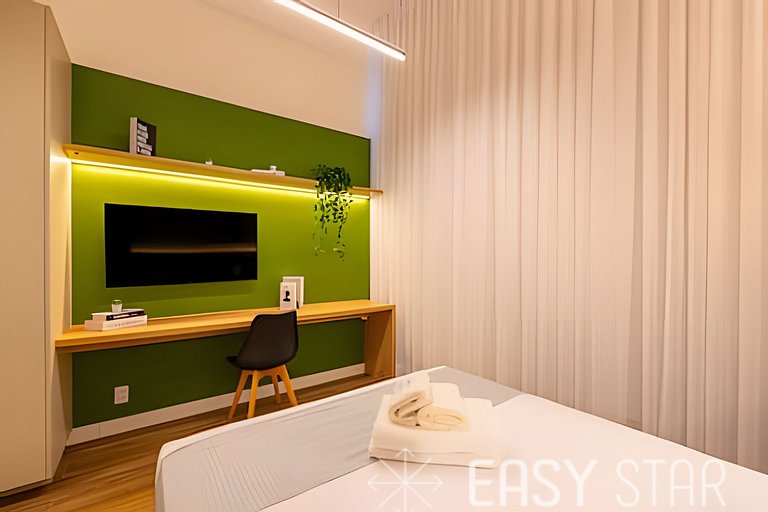 A equipe de portaria está disponível 24 horas por dia para garantir que sua entrada a qualquer momento do dia. Relaxe e desfrute de momentos revigorantes na piscina interna, perfeita para se refrescar e aproveitar as altas temperaturas. Para maior praticidade o condominio oferece uma lavanderia OMO paga no local, facilitando o cuidado com suas roupas durante a estadia. Mantenha-se ativo e em forma durante sua estadia na academia bem equipada, onde você pode se exercitar conforme sua conveniência. +- Seja para uma viagem de negócios ou lazer, nosso espaço é o seu refúgio ideal, onde você pode relaxar e aproveitar cada momento da sua estadia. Estamos ansiosos para recebê-lo e tornar sua experiência conosco inesquecível.