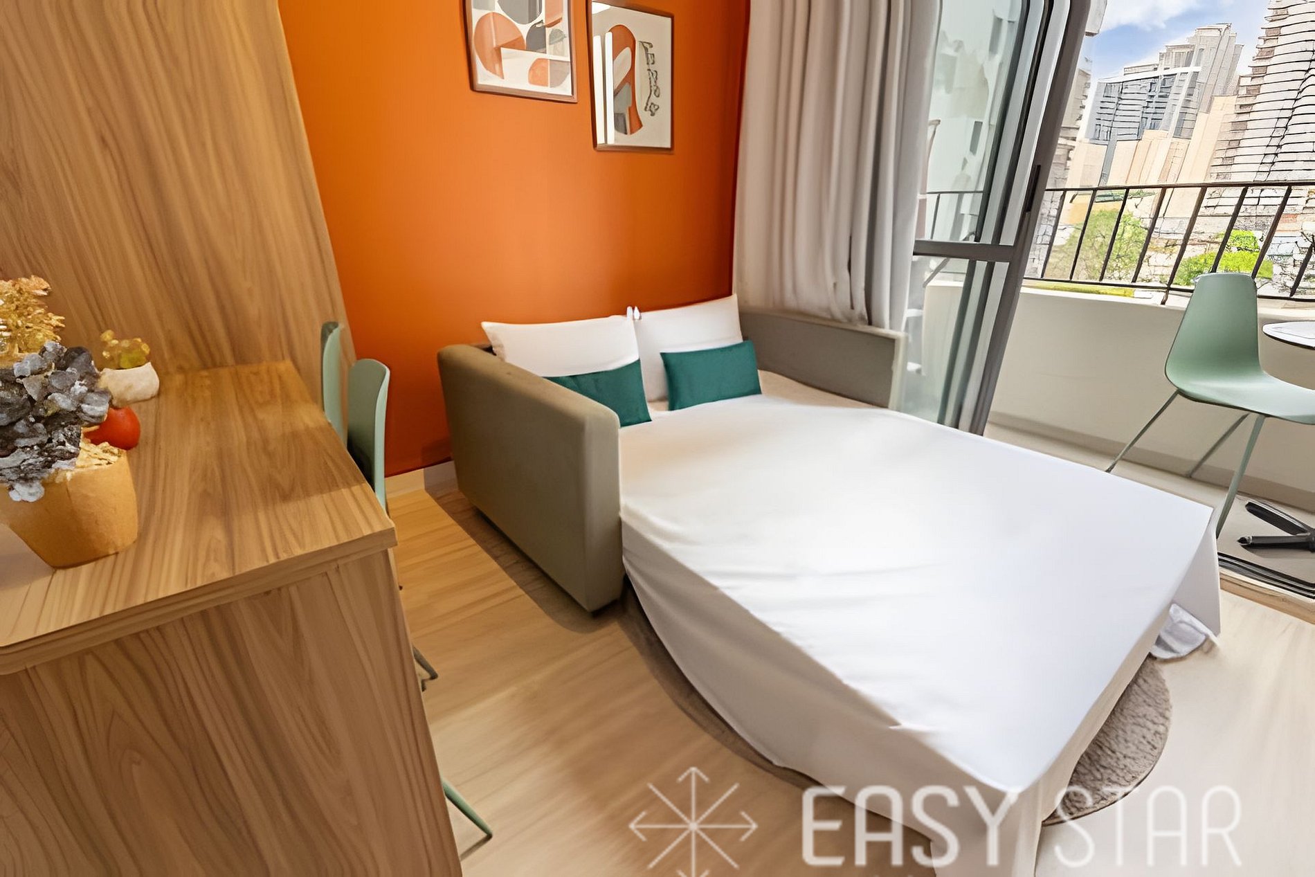 A unidade também oferece comodidades modernas, como ar-condicionado split e uma conexão Wi-Fi. Em termos de entretenimento. A cereja do bolo é a varanda que proporciona uma luminosidade única e uma bela vista.