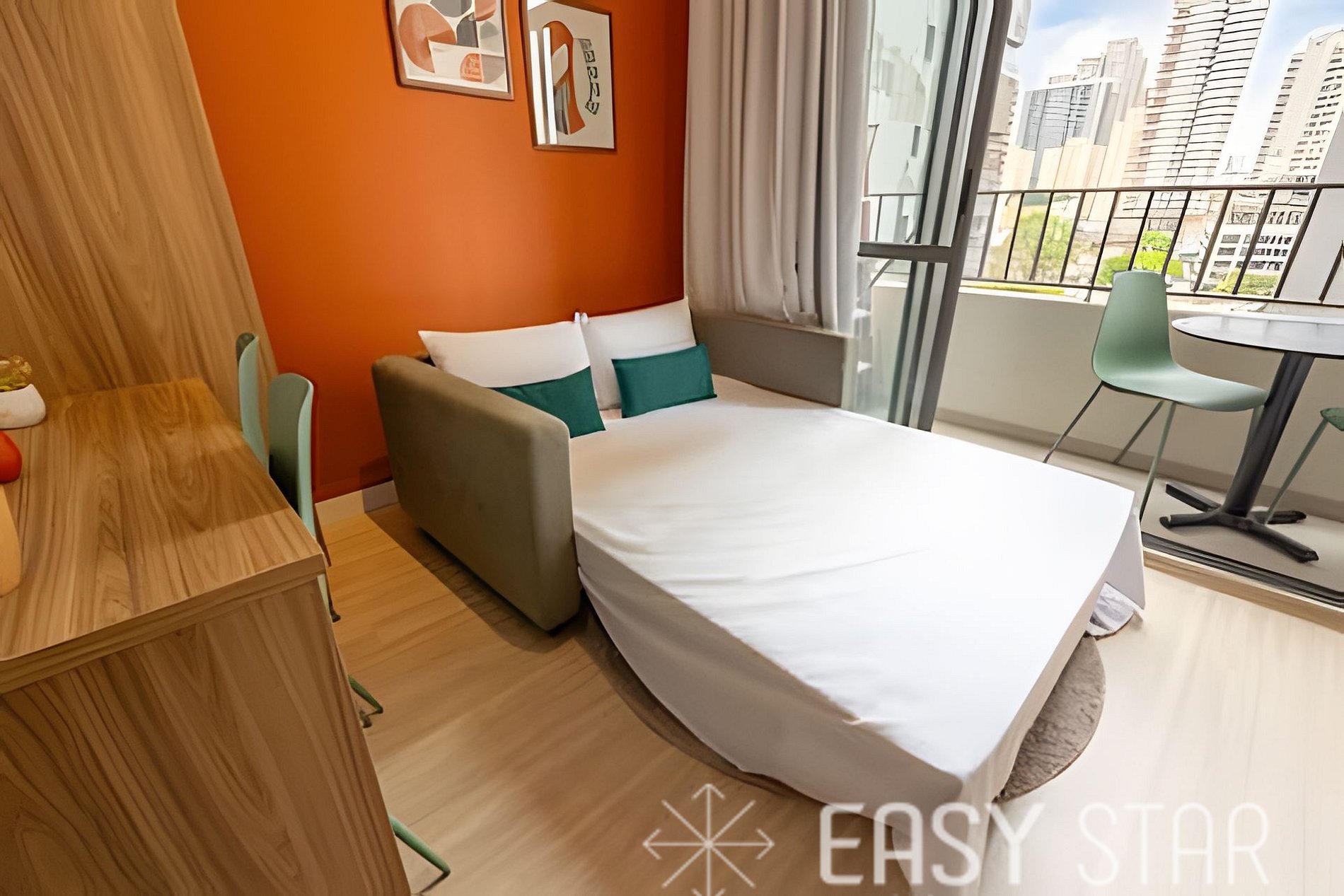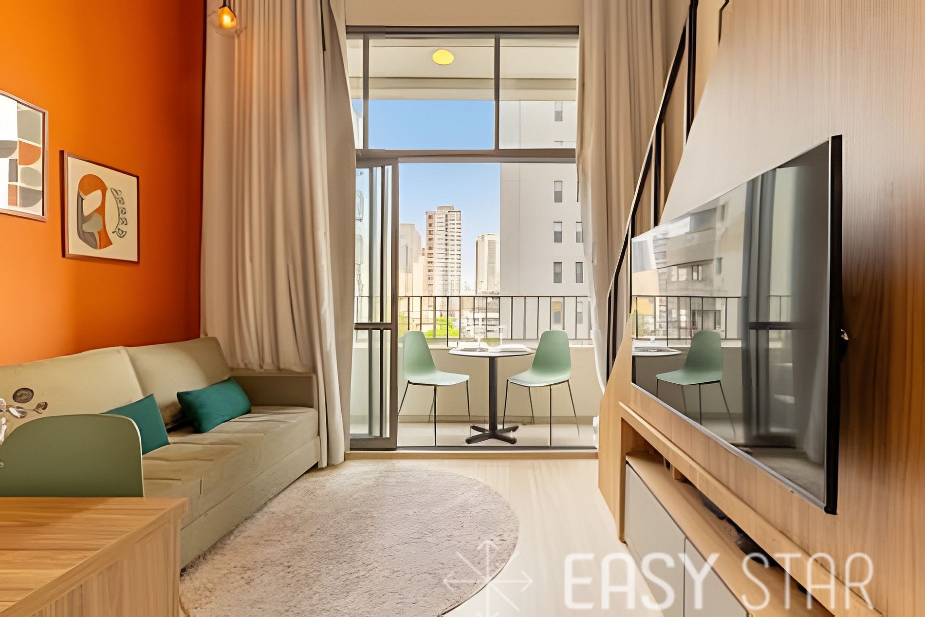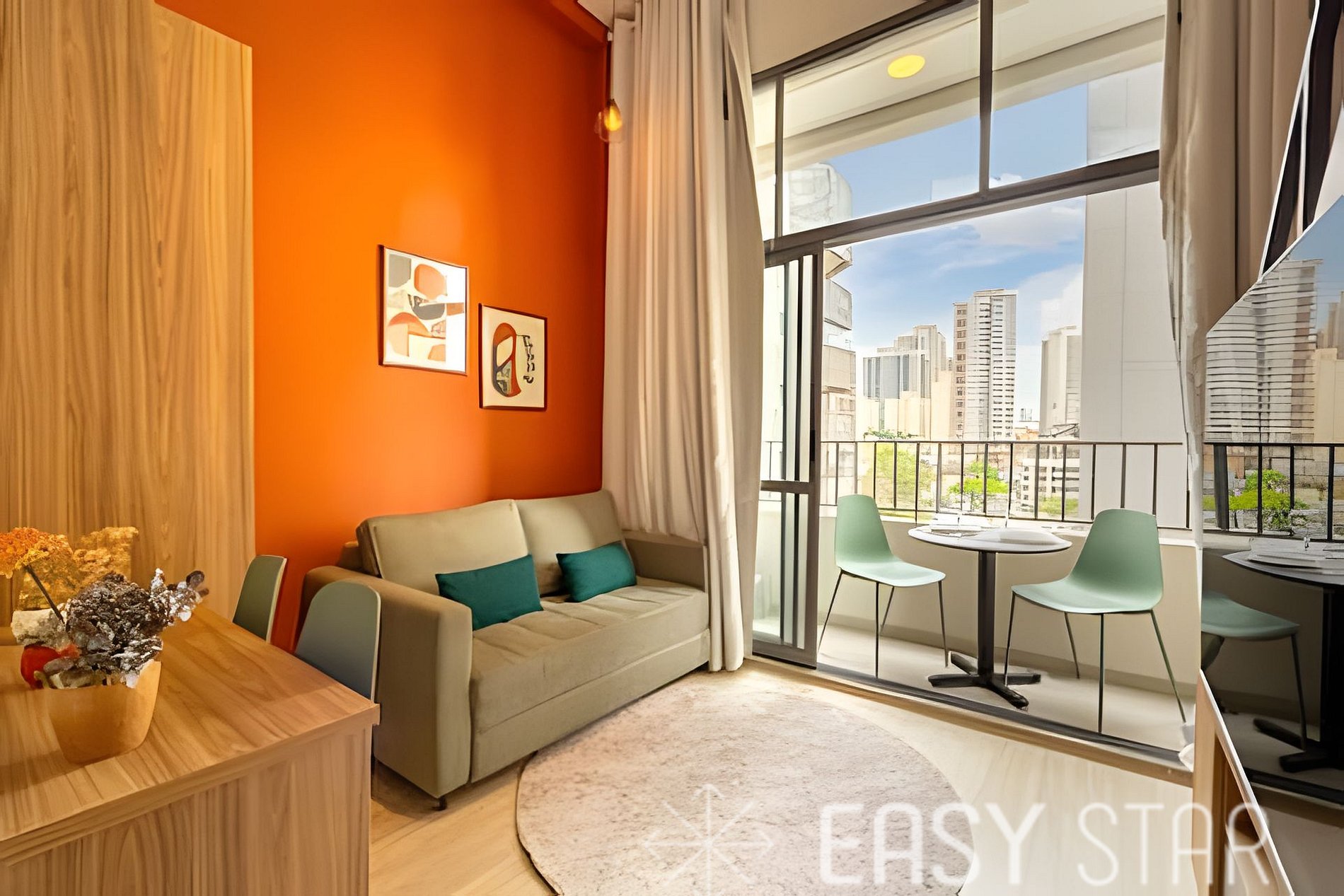 A unidade também oferece comodidades modernas, como ar-condicionado split e uma conexão Wi-Fi. Em termos de entretenimento. A cereja do bolo é a varanda que proporciona uma luminosidade única e uma bela vista.