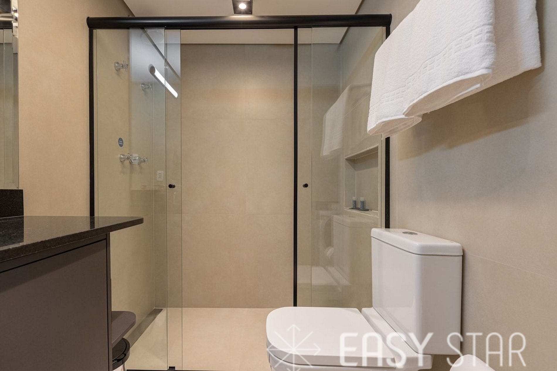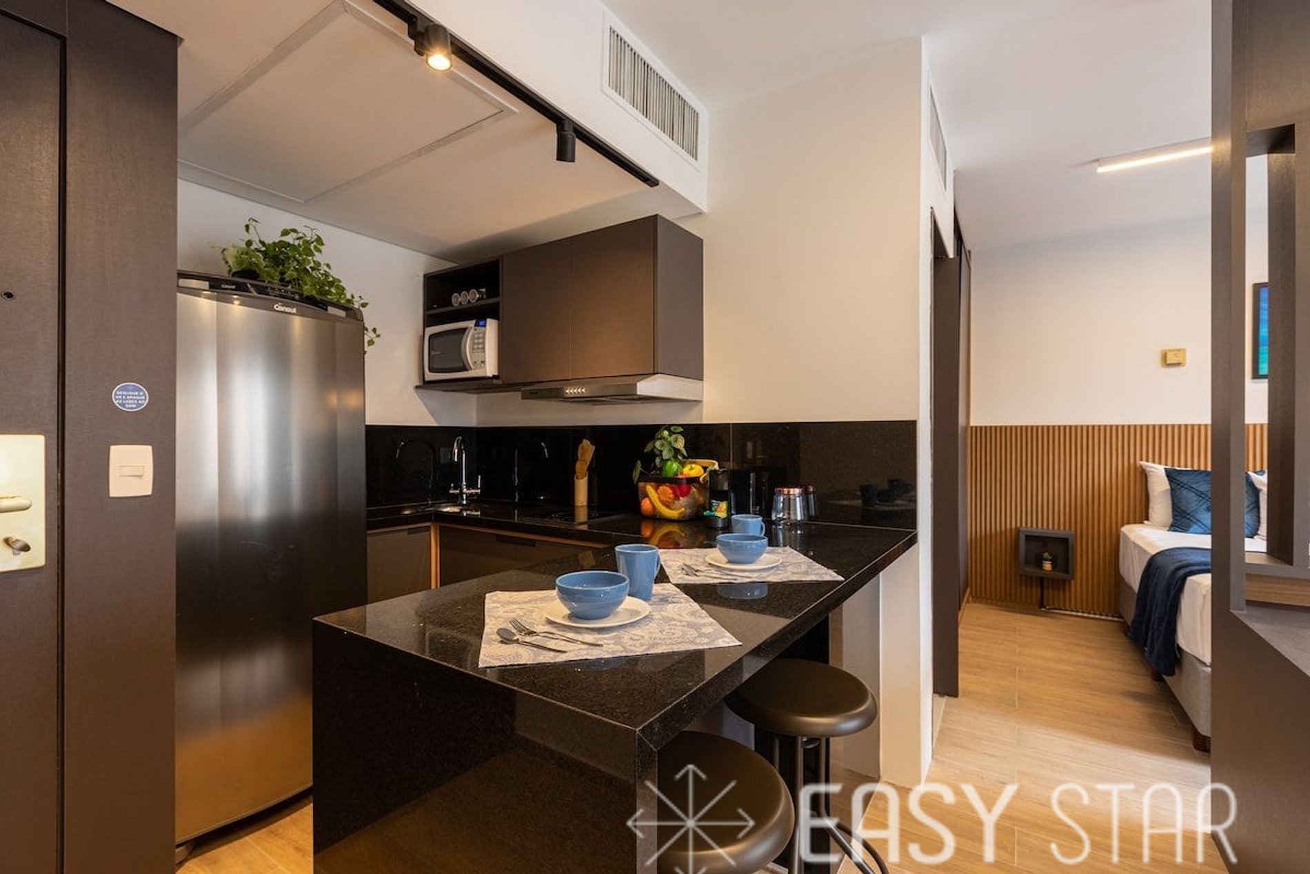O espaço possui uma decoração leve e aconchegante, foi montado para receber até 4 pessoas. Possui roupa de cama e banho. Possui restaurante com opção de café da manhã e pratos a lá carte, pagos à parte da estadia, diretamente no balcão. (não incluso) Unidade residencial localizada dentro do Hotel. Não conta com produtos como: alimentos, bebidas no frigobar e também o serviço de troca de cama e banho não estão inclusos, porém podem ser adicionados à sua estadia por um valor adicional, entre em contato para saber como funciona. Possui limpeza que poderá ser agendada diretamente na recepção ou deixando a tag na maçaneta, porém sem troca de roupa de cama e banho. (valor pago à parte pelo hóspede). -Ar central Deixamos alguns itens na unidade para sua chegada e demais itens de uso pessoal precisam ser providenciadas pelo hóspede para restante de sua estadia. Por exemplo, alimentos, papel higiênico, etc. A propriedade conta com recepção 24 horas, piscina coberta, academia e estacionamento privativo como cortesia no local.