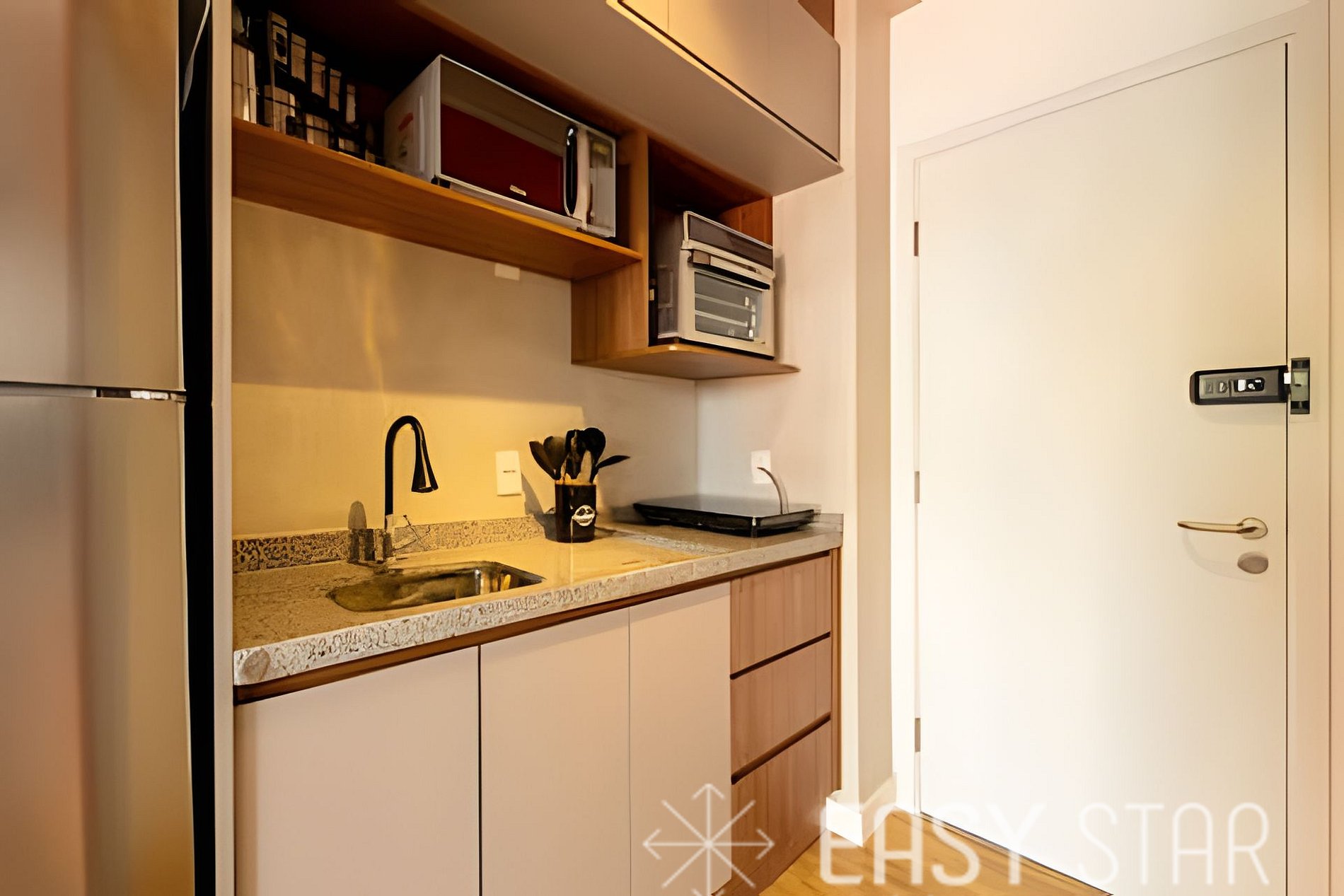 Hóspede tem acesso coworking, academia lavanderia. Além disso a portaria é 24h.
