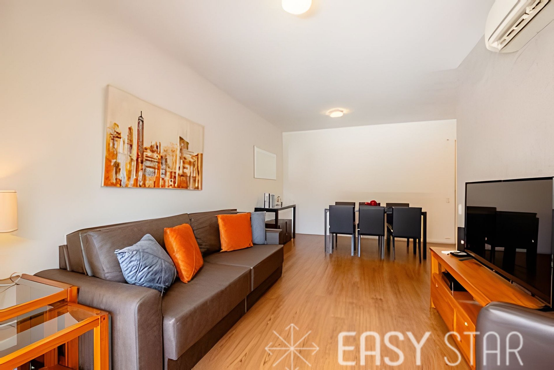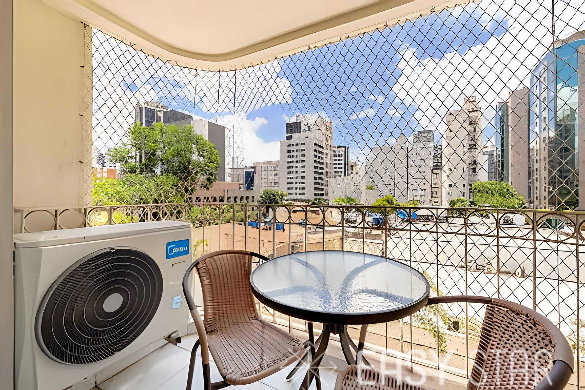 Conta com ar condicionado em todos os quartos e sala.