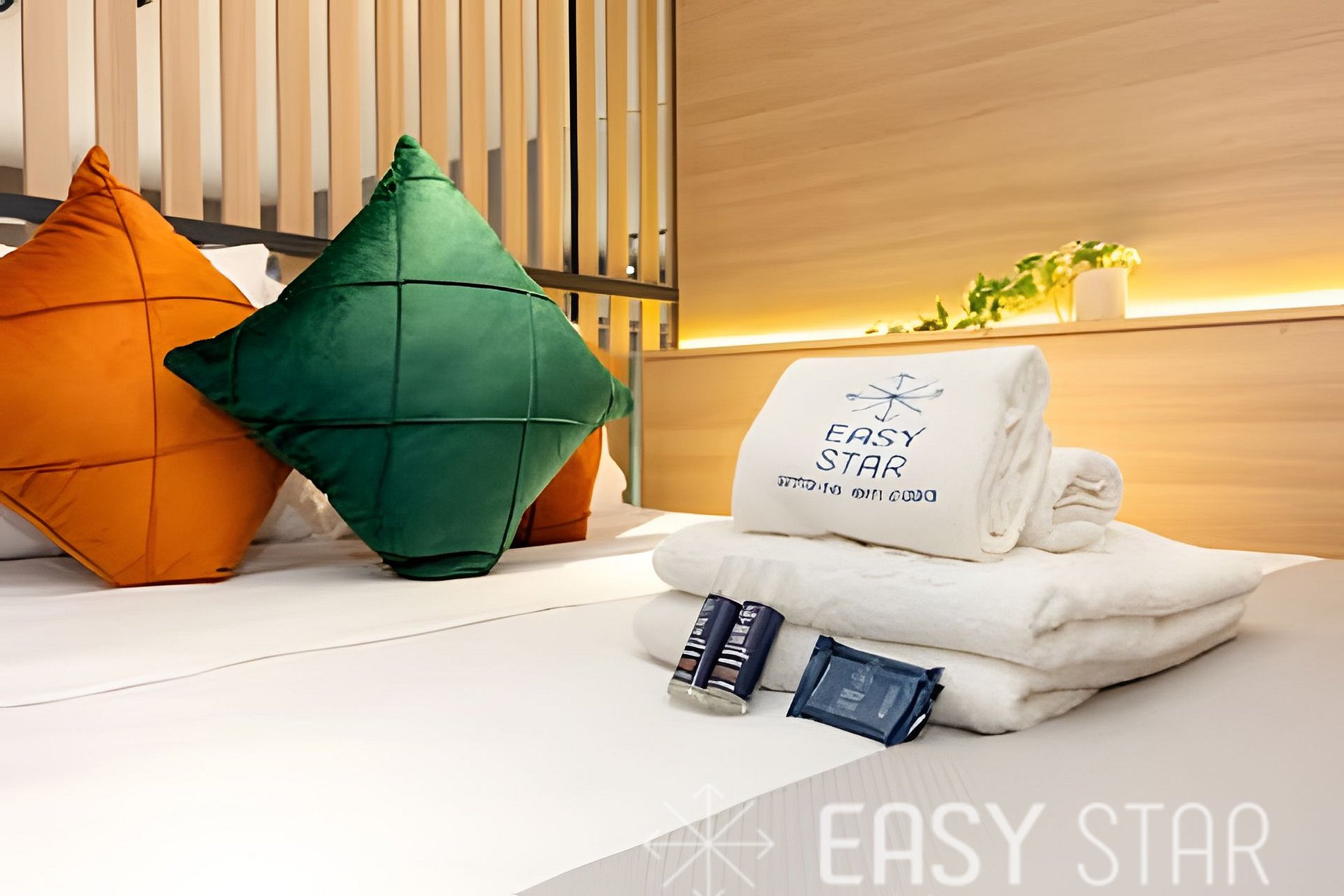 • Kit de banho por hóspede: 1 toalha de corpo e 1 de rosto.