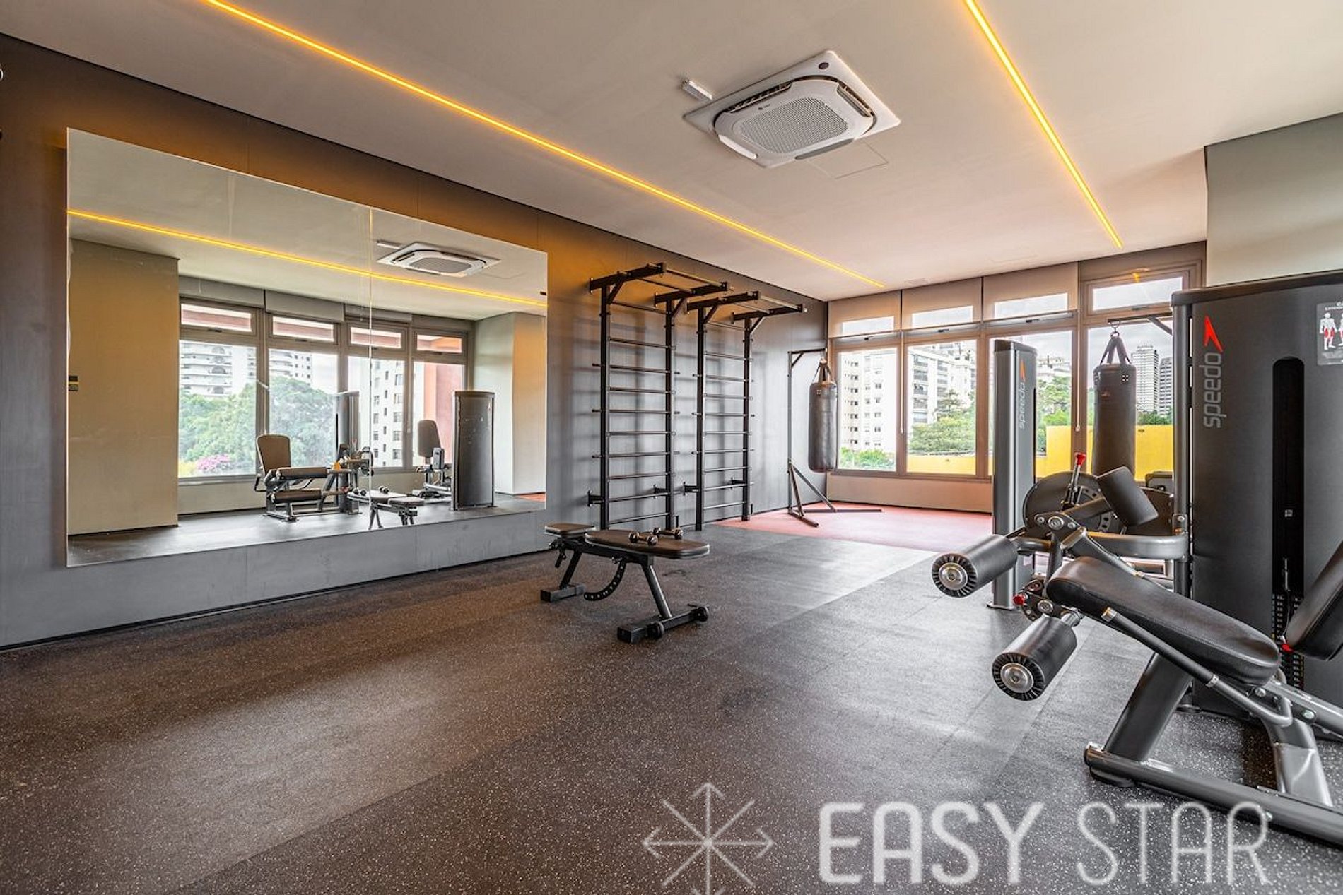 Dispõe de área de lazer com piscina, academia equipada, espaço compartilhado de trabalho ideal para home office ou reuniões rápidas e lavanderia compartilhada, proporcionando mais conveniência no dia a dia.