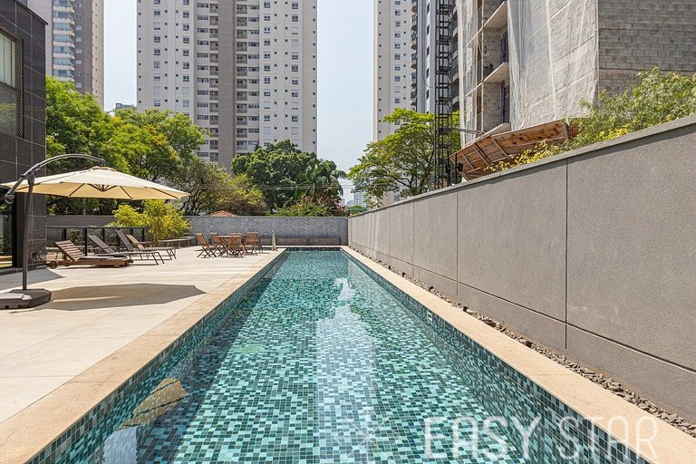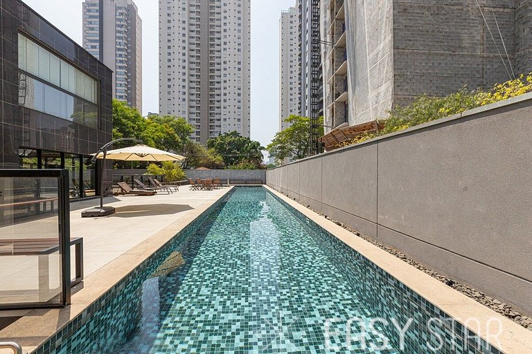 Hóspede tem acesso a piscina, academia, lavanderia omo (pago a parte no proprio condominio), self market (mercadinho). Conta com 1 vaga de carro não demarcada.
