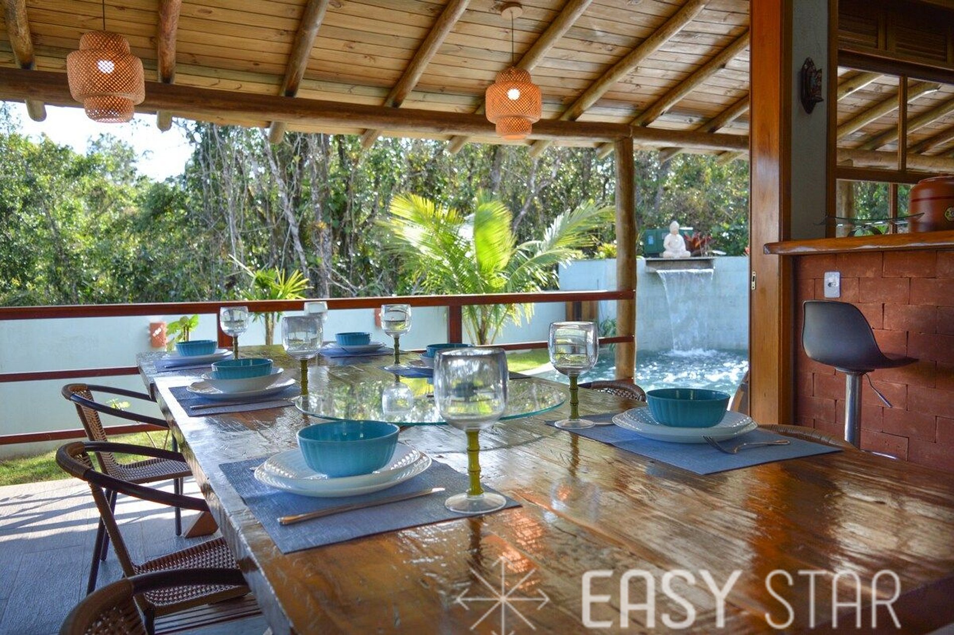 Uma das características mais destacadas desta casa é a sua piscina deslumbrante, adornada por uma bela cascata. Pode ter certeza de que muitos momentos de relaxamento e diversão o aguardam à beira da piscina.A área de churrasqueira, integrada à piscina é perfeita para churrascos em família ou com amigos. E, para aqueles que gostam de cozinhar, a cozinha está totalmente equipada com fogão, micro-ondas, forno elétrico, geladeira e todos os utensílios necessários para preparar suas refeições favoritas. Além disso temos uma cafeteira Dolce Gusto que está à sua disposição, caso goste poderá trazer suas cápsulas. Oferecemos roupa de cama e banho padrão branco, a roupa de cama é de uso estritamente interno da casa: quartos e banheiros.