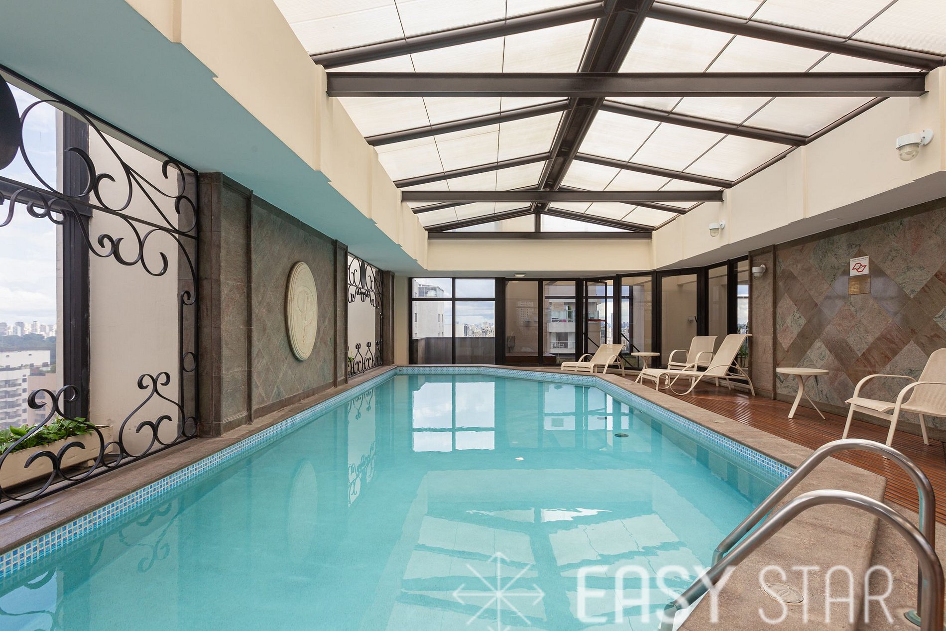 Para aqueles que buscam manter seu regime de exercícios mesmo durante as viagens, a academia do hotel é uma ótima opção para se manter em forma. Piscina Coberta Relaxe e revitalize-se na piscina coberta, onde a tranquilidade encontra o luxo. Independentemente das condições climáticas lá fora, você pode desfrutar de momentos de lazer e descontração em um ambiente confortável e sereno. Lavanderia (paga à parte): Entendemos a importância de manter-se fresco e apresentável durante suas viagens. Para sua comodidade, o hotel oferece um espaço para que você possa higienizar suas roupas durante a sua estadia. Limpeza do Flat É possivel solicitar arrumação básica (sem troca de enxoval), diretamente na recepção. Consulte os dias em que estará disponivel no andar em que voce ficará hospedado diretamente na recepção. Recepção 24 Horas: A equipe do hotel esta pronta para fazer seu check-in a qualquer horário, além de poder te auxiliar com questões básicas do dia-a-dia. (para resolver assuntos pertinentes a sua reserva, entre em contato conosco)